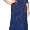 Long Embellished Neck Dress with Elbow Sleeves and Cascade Detail Skirt