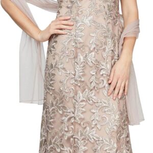 Alex Evenings Women’s Long Sleeveless Mother of The Bride Dress with Shawl (Petite and Regular Sizes)