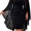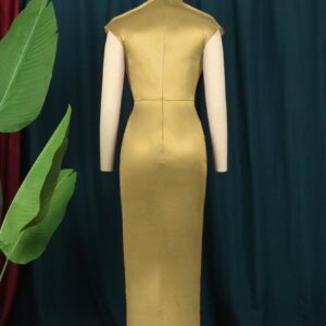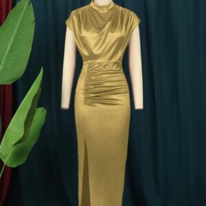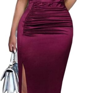 AOMEI Women’s Cap Sleeve High Waist Ruched Slit Slim Elegant Long Satin Formal Dress