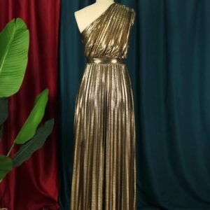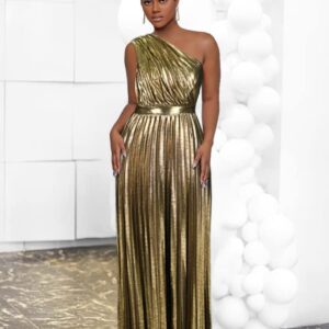 AOMEI Women's Luxury Metallic One Shoulder Sleeveless Elegant Pleated Long Dress
