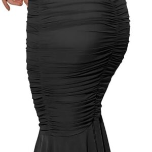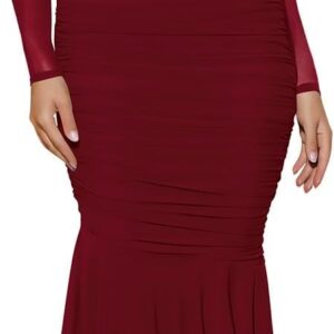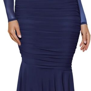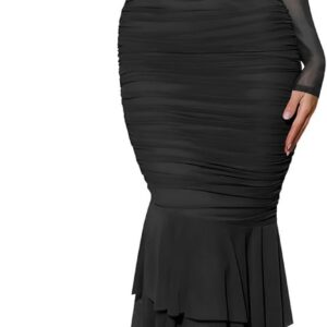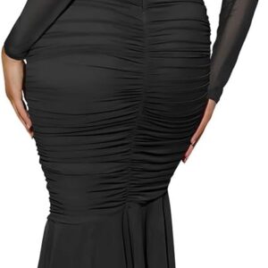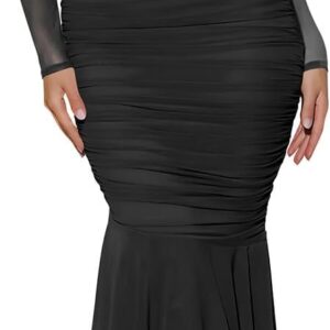 Atizon Ruffle Bodycon Long Sleeve Mesh Maxi Long Dress