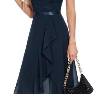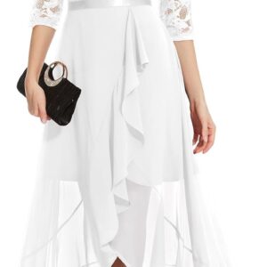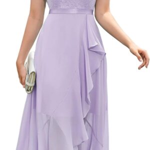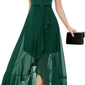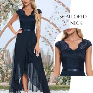 Floral Lace Dress For Women Wedding Guest V-Neck Hi-Lo Cocktail Prom Dress