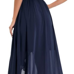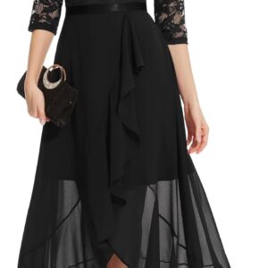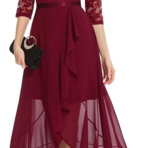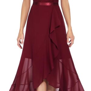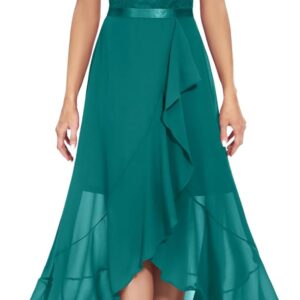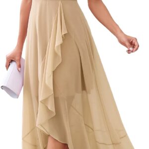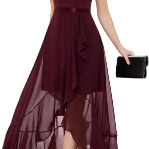 Lace chiffon dress specially designed with hi-lo ruffle skirt, suitable as a formal dress. Comfy and flattering silhouette, ideal as a wedding guest dress and prom party dress. Elegant and classic style, great for wedding prom party, a nice bridesmaid dress or bridal shower dress.