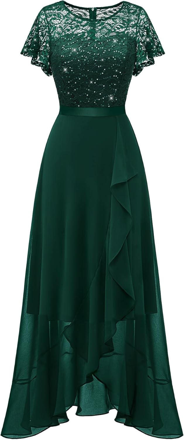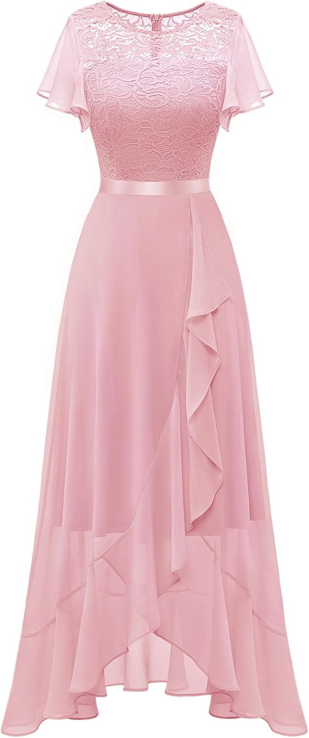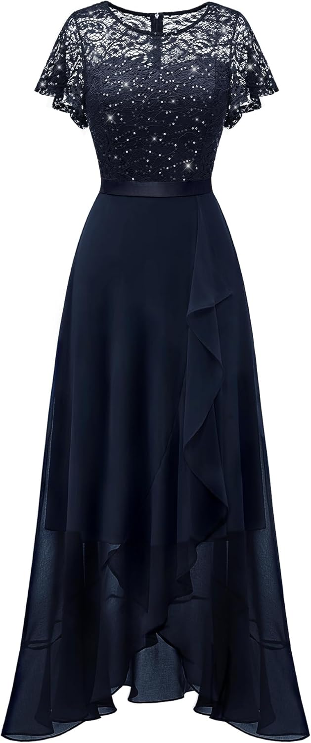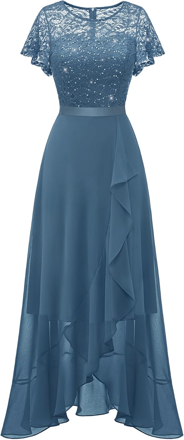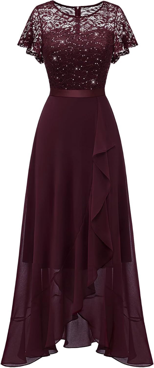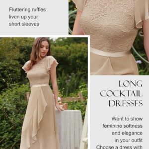 BeryLove Women Elegant Long Wedding Guest Dresses Short Sleeve Evening Dress