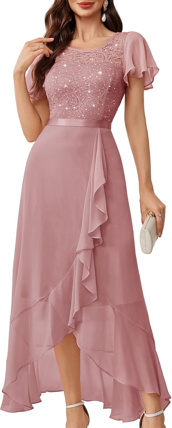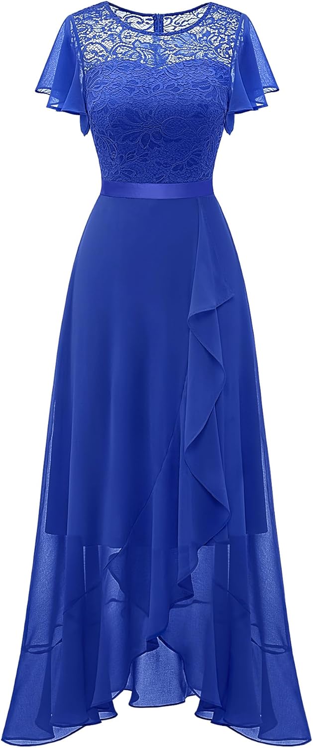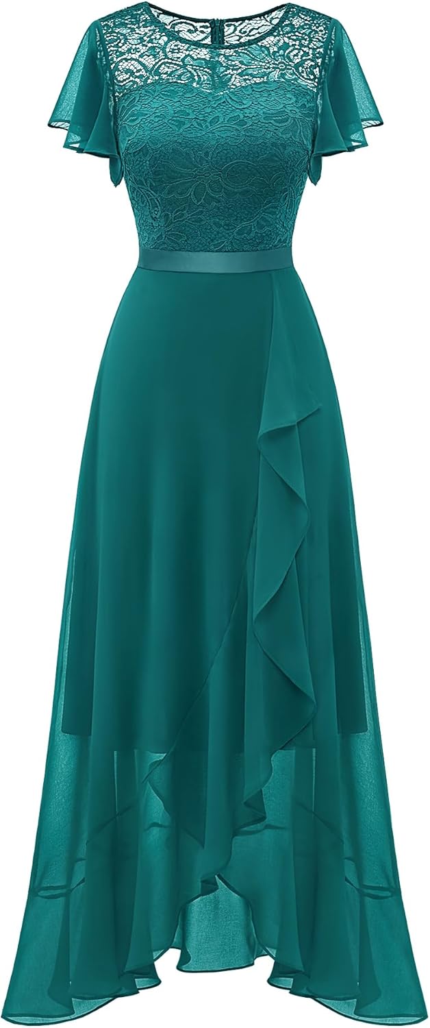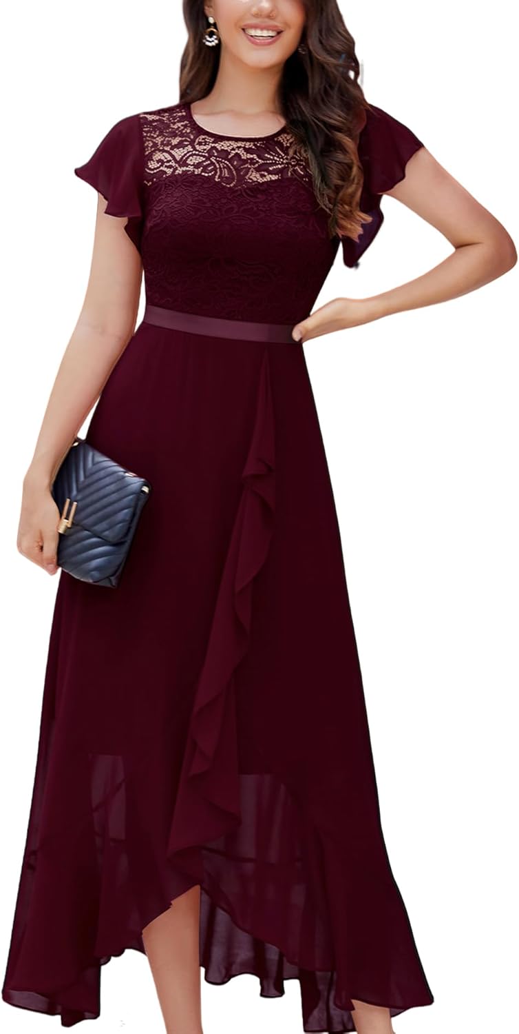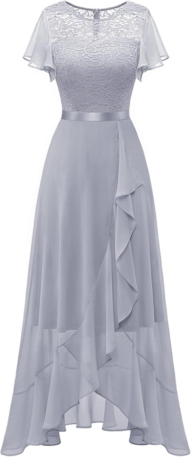 BeryLove Women Elegant Long Wedding Guest Dresses Short Sleeve Evening Dress