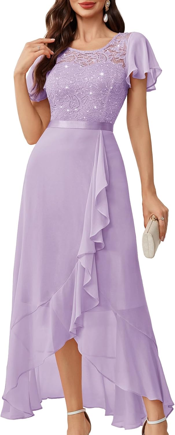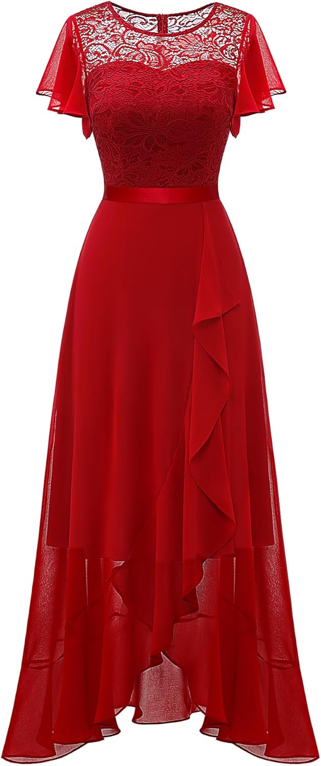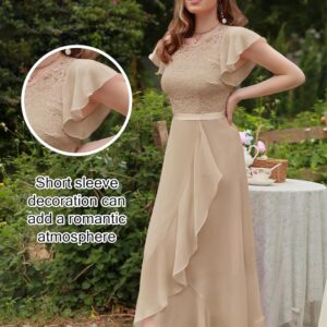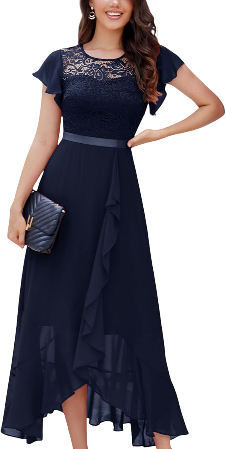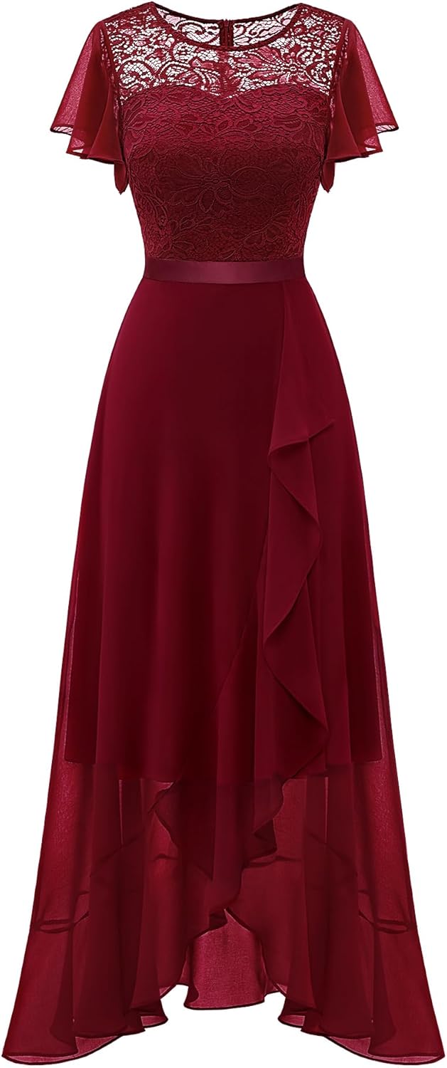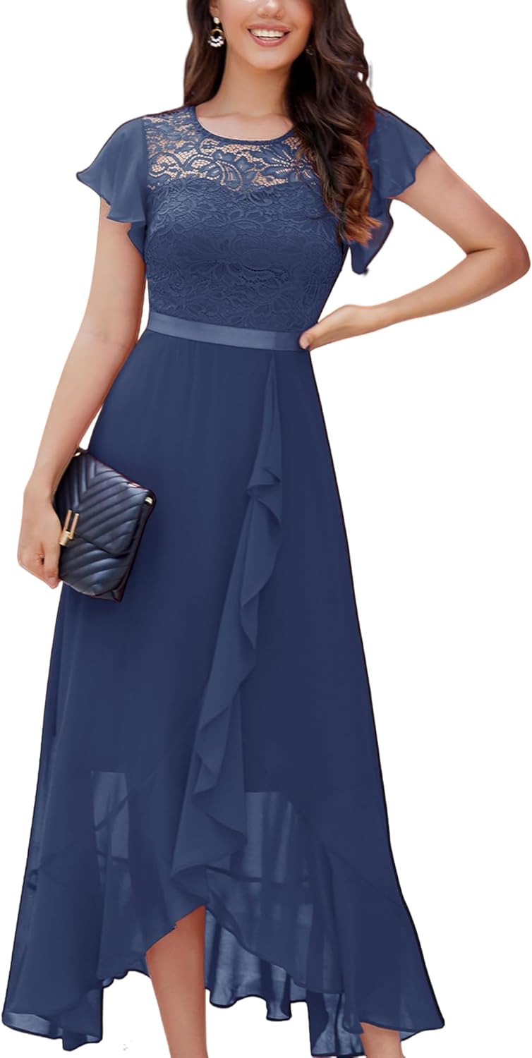 BeryLove Women Elegant Long Wedding Guest Dresses Short Sleeve Evening Dress