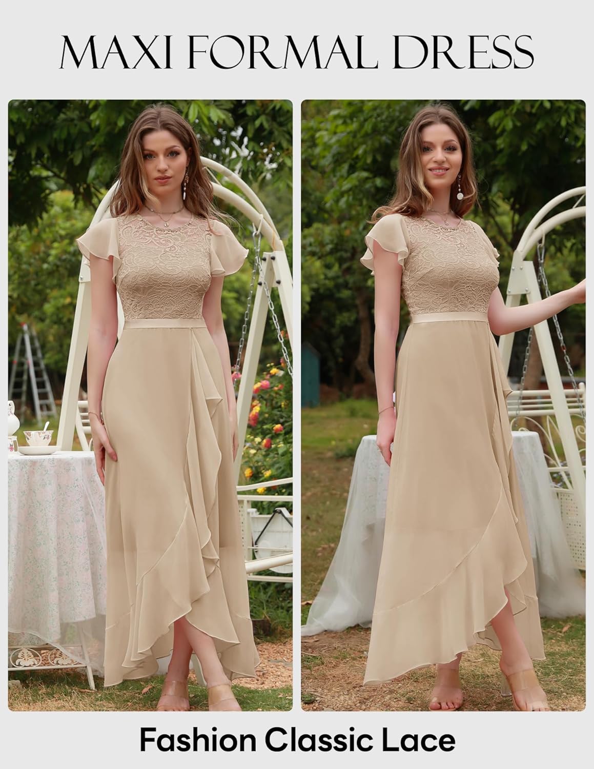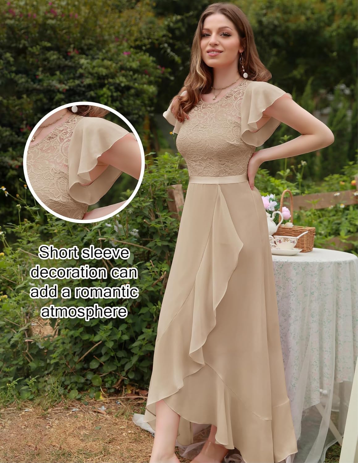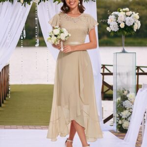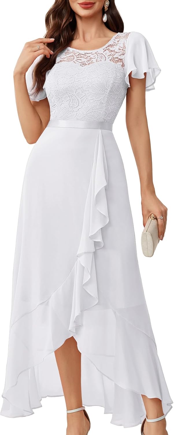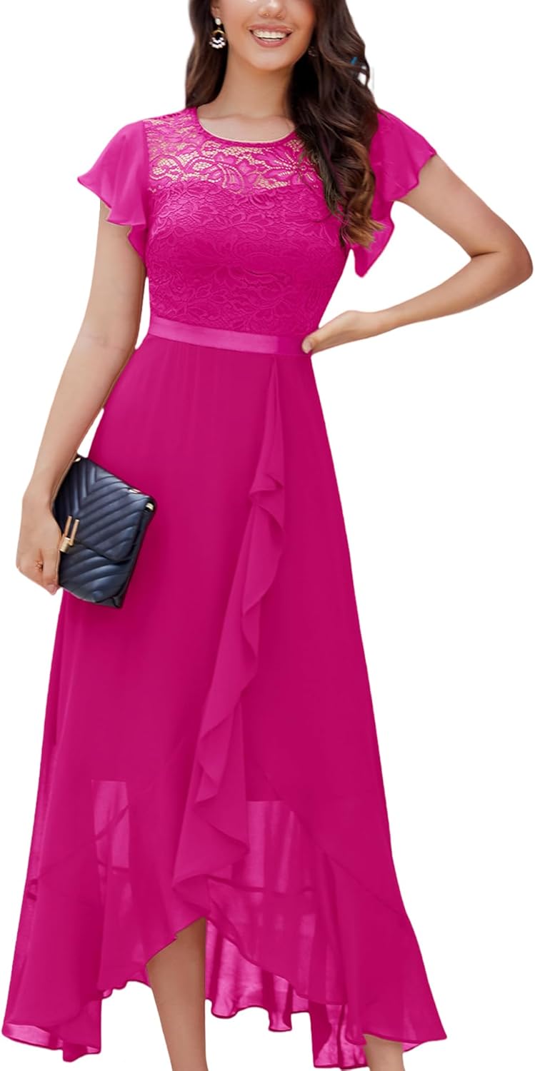 BeryLove Women Elegant Long Wedding Guest Dresses Short Sleeve Evening Dress