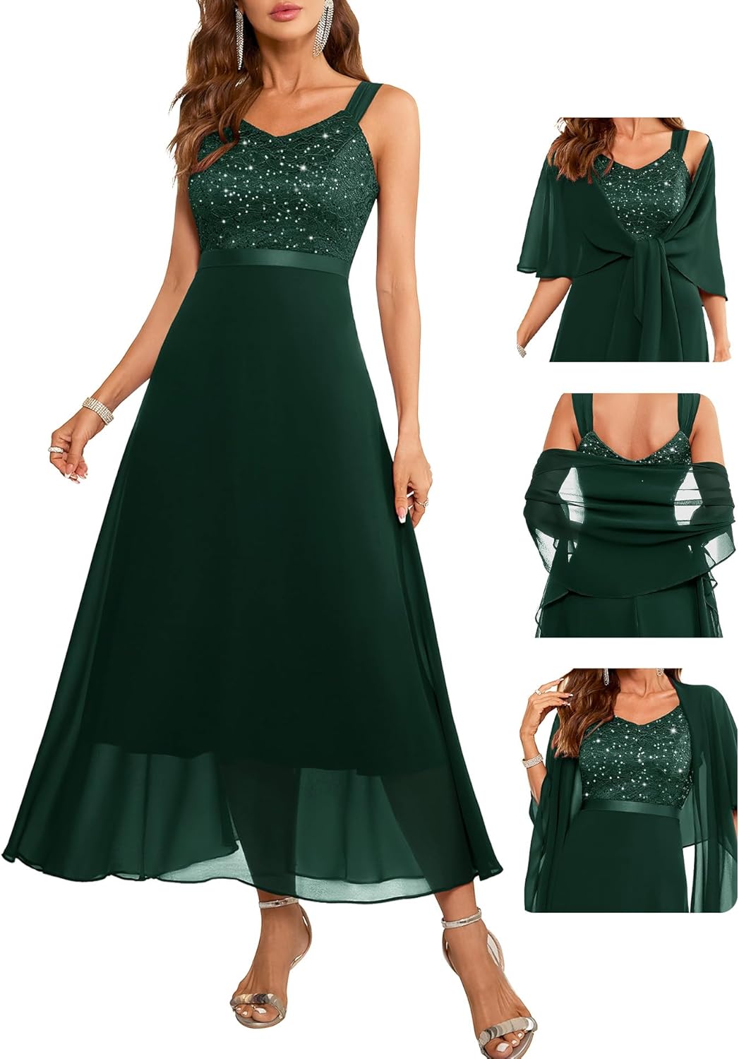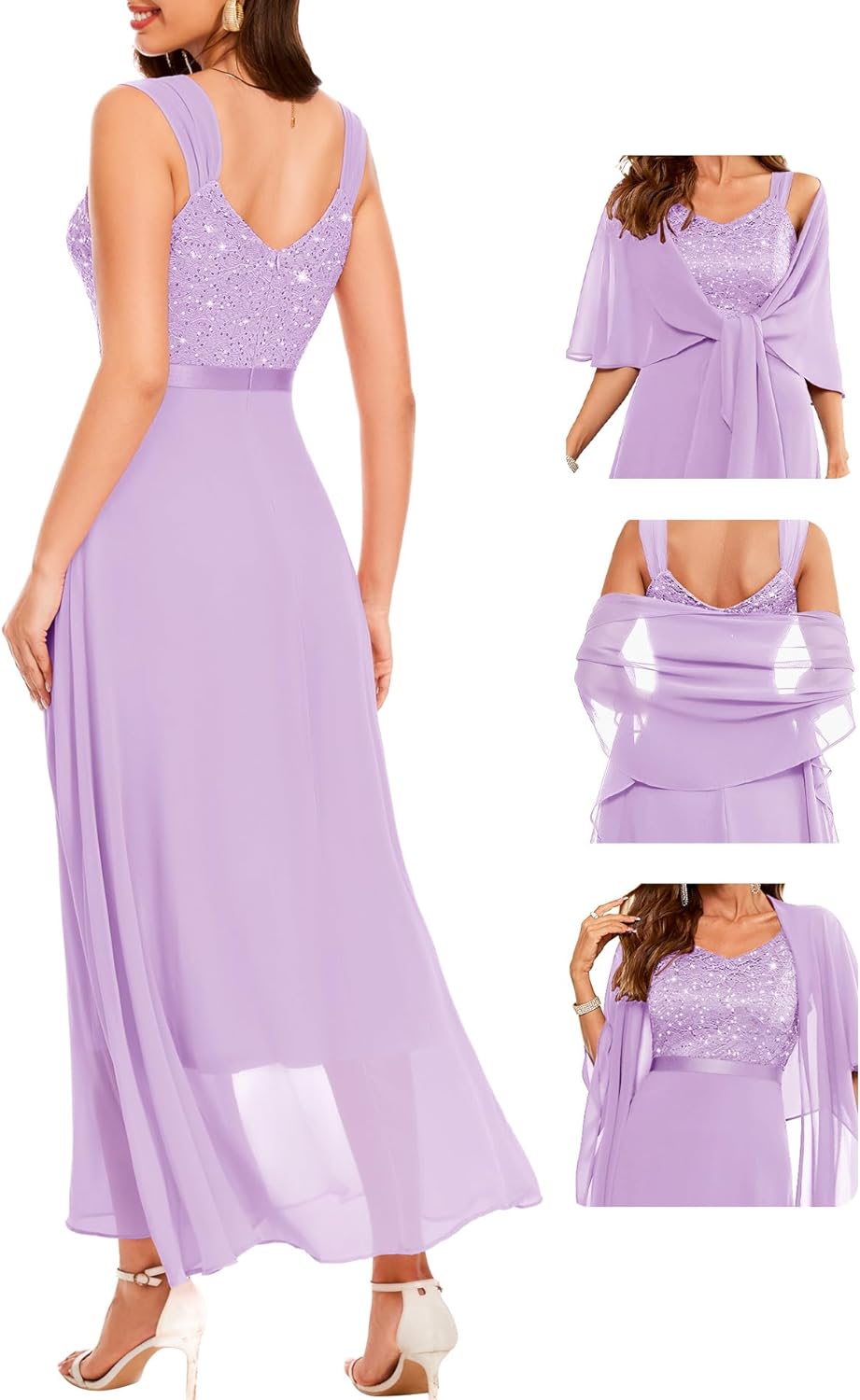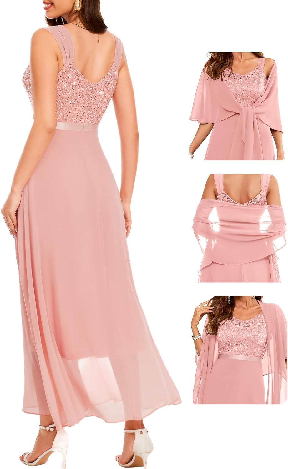 BeryLove Formal Wedding Guest Sequin Mother of The Bride Dress Evening Dresses
