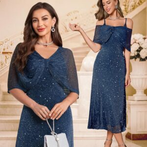 BeryLove Sequin Evening Formal Gowns Elegant Spaghetti Strap Cocktail Dress