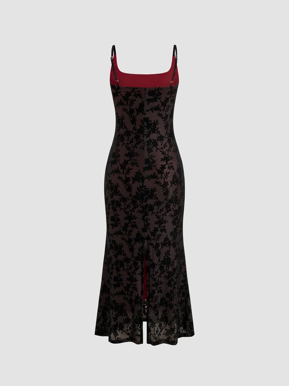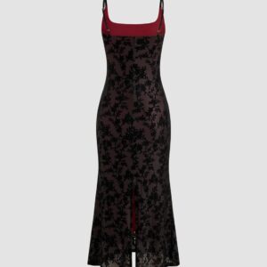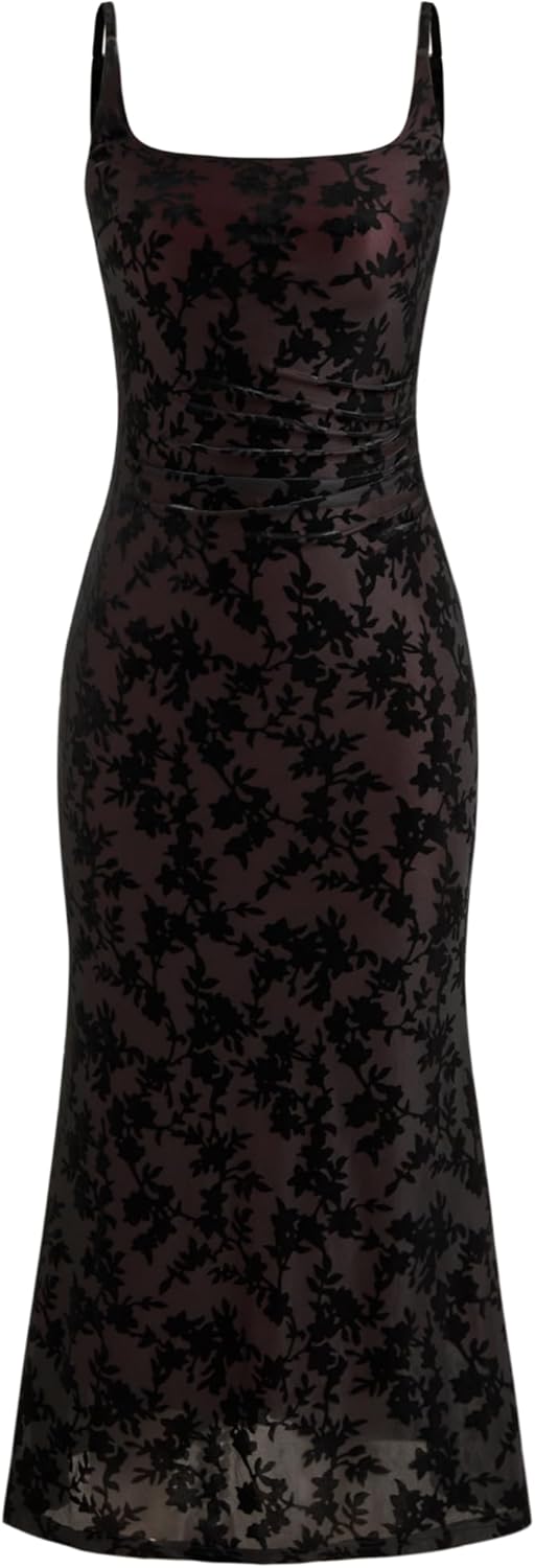 CIDER Dress for Women Floral Ruched Maxi Dress Square Neck Slim Fit Holiday Party Elegant Evening