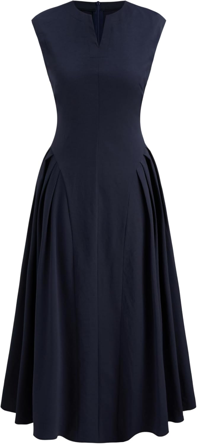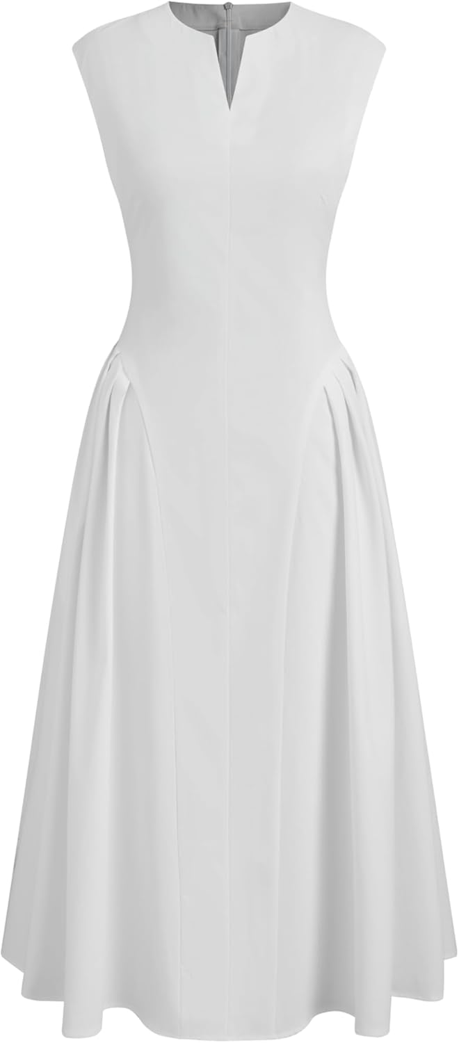 CIDER Maxi Dress for Women Sleeveless High Waist Solid Pleated V Neck Vacation Elegant Party Evening Dresses