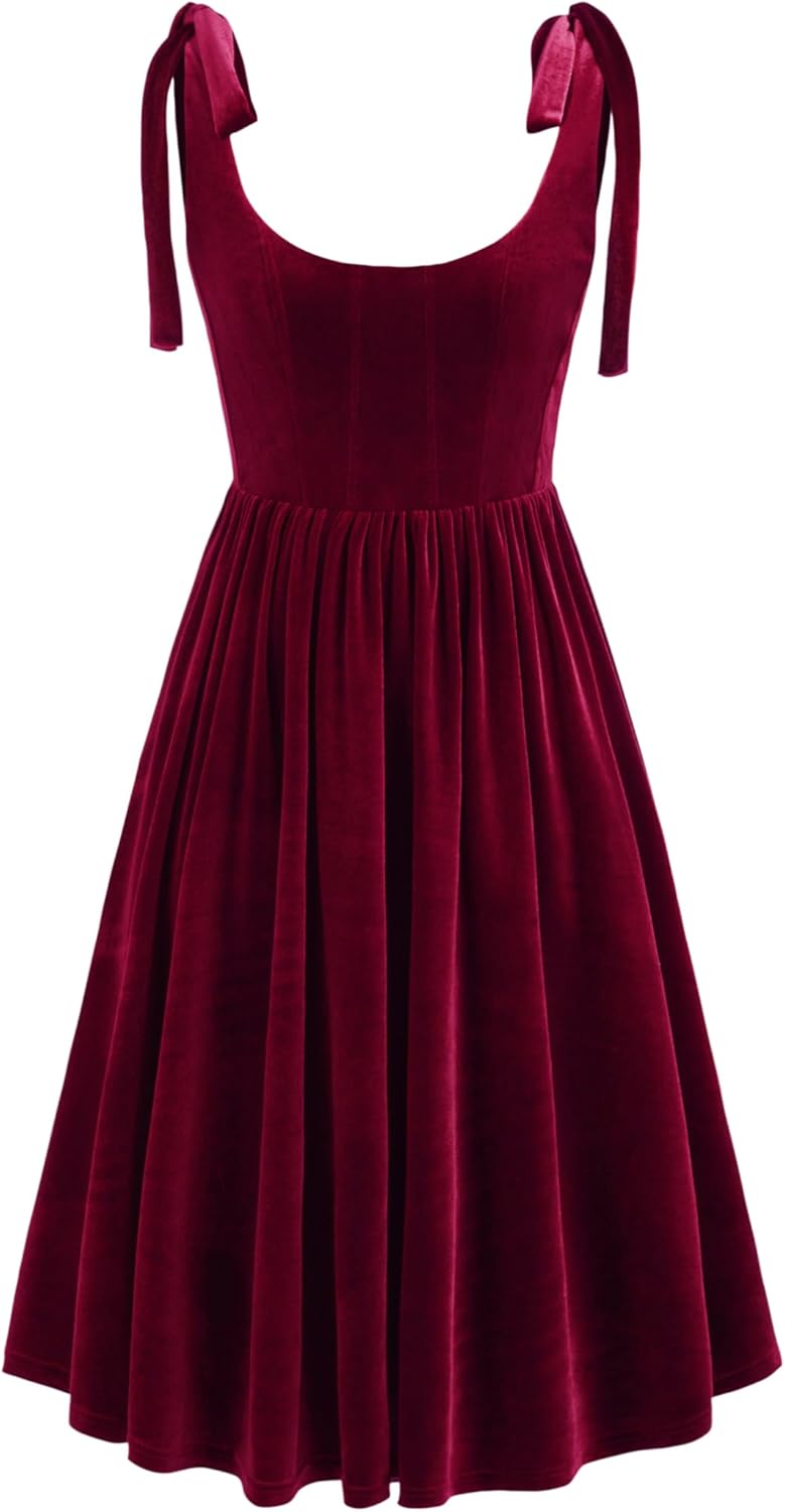 CIDER Velvet Dress for Women Midi Solid Knot Scoop Neckline Sleeveless Cocktail Party Evening Dress