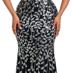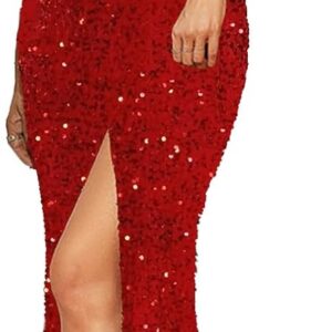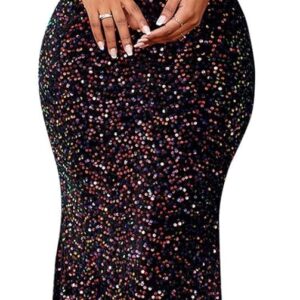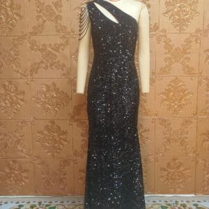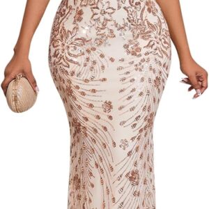 Cololura Women Sequin Elegant Sexy One Shoulder Tassel Mermaid Bodycon Cocktail Evening Dress