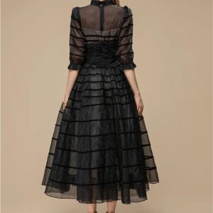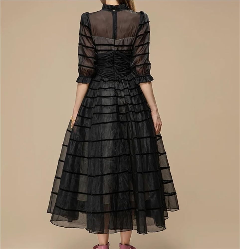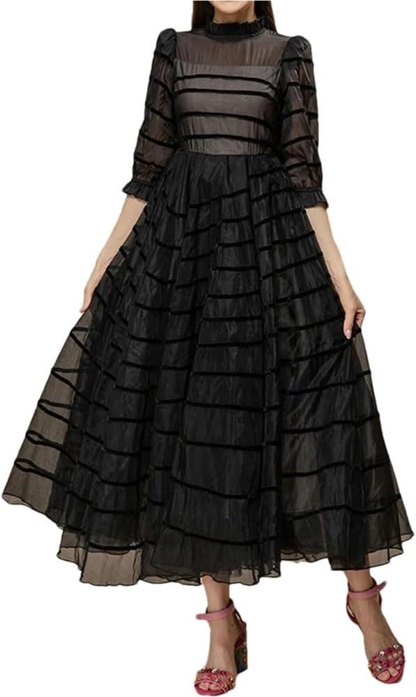 DHFIRUFSHLO Women’s High Waist Belted Stand Collar Long Party Dress Formal Evening Gown