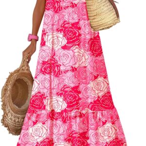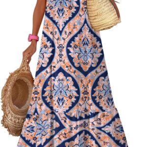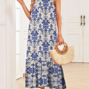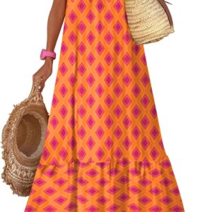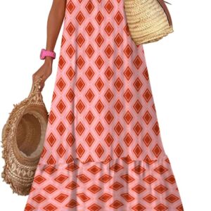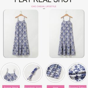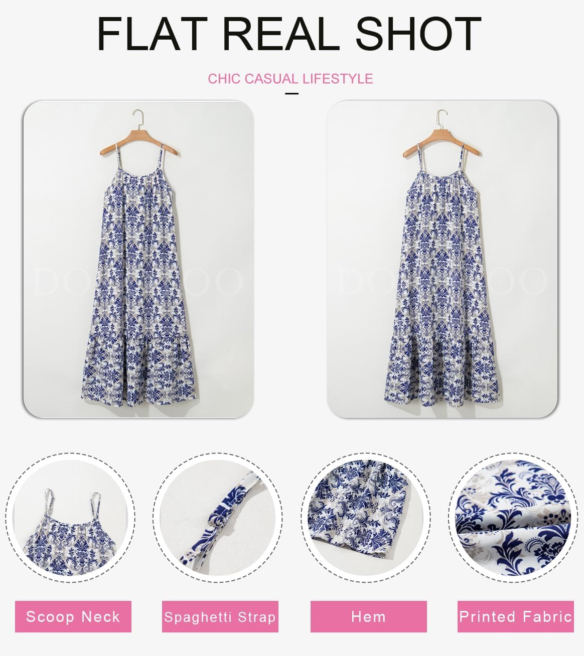 Dokotoo Women Summer Dresses 2025 Spaghetti Strap Scoop Neck Smocked Ruffle Flowy Boho Maxi Dress