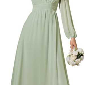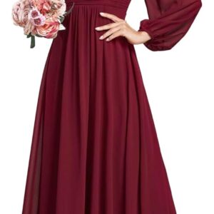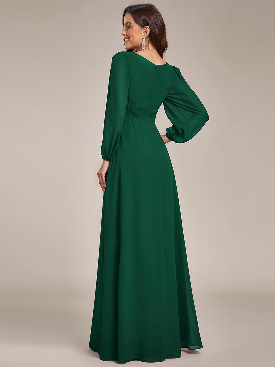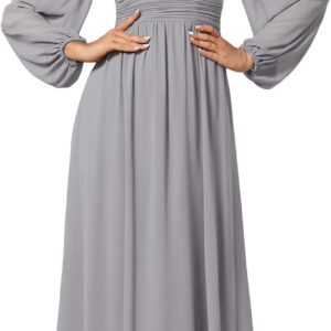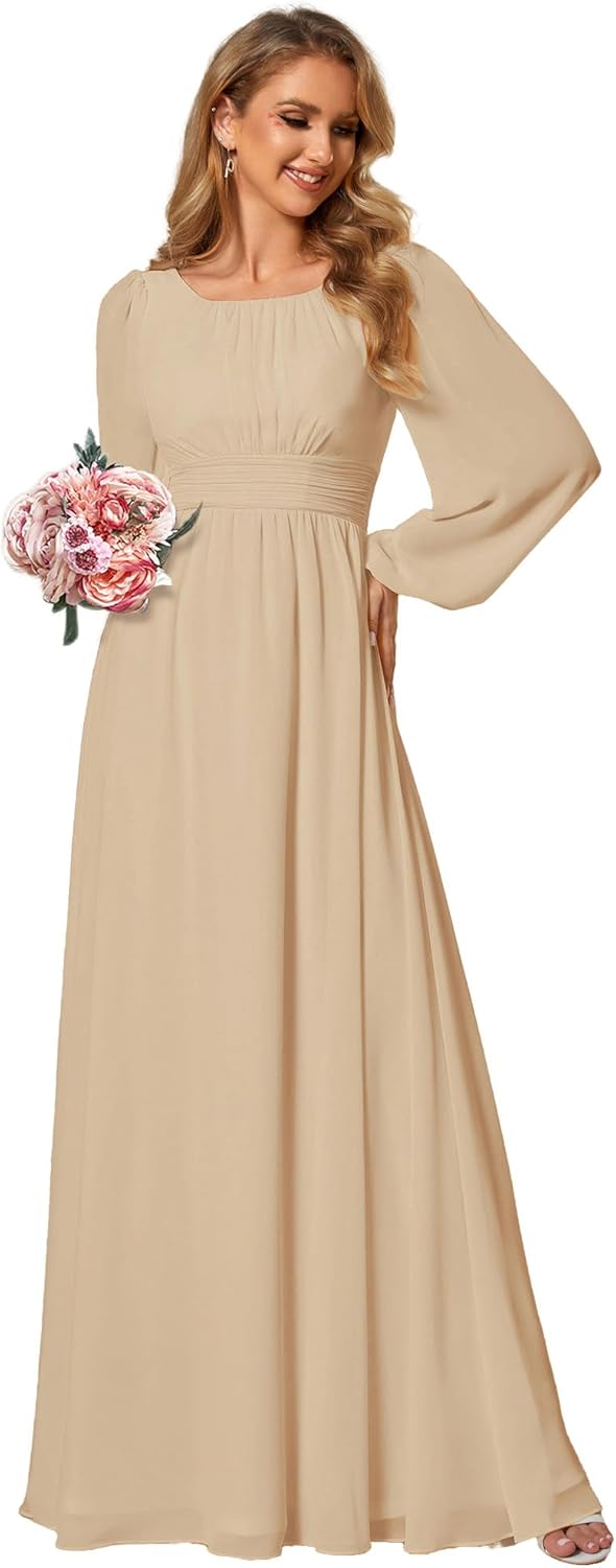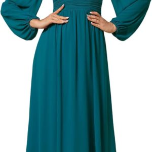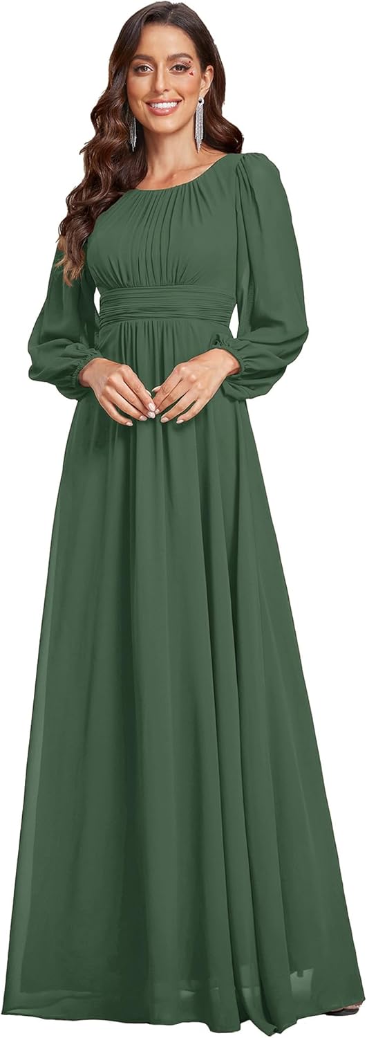 Ever-Pretty Women’s Crewneck Long Lantern Sleeves Floor Length A-Line Pleated Chiffon Formal Dress 0106B