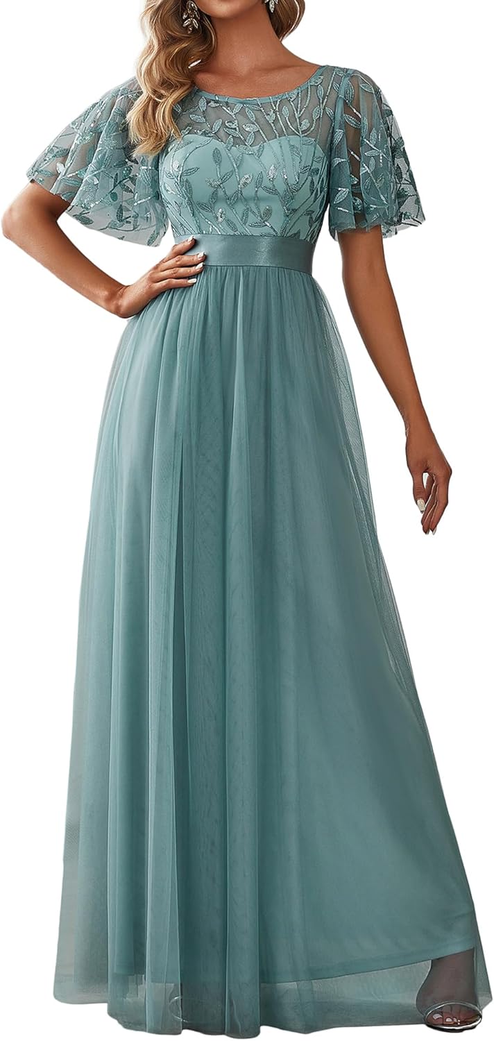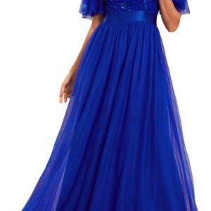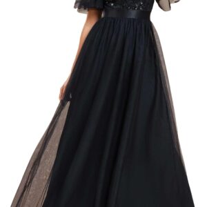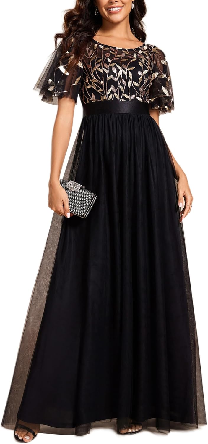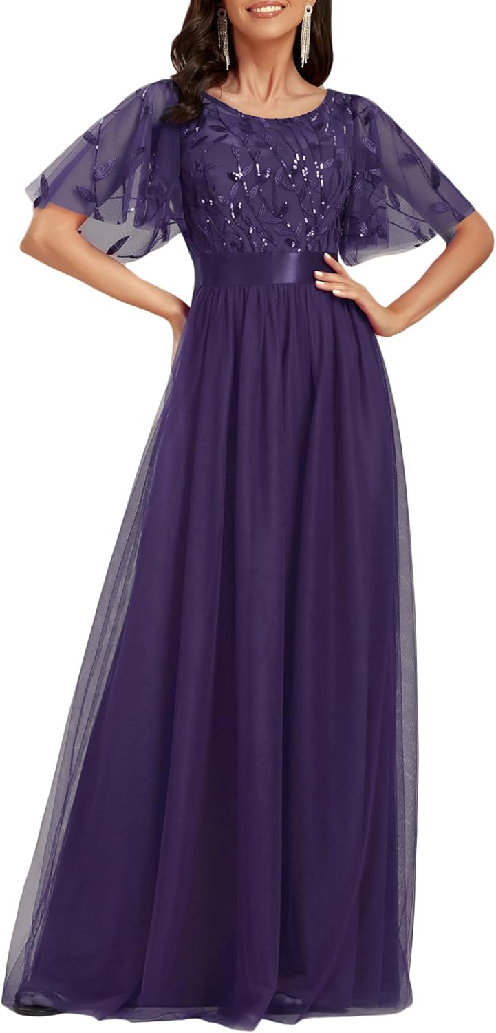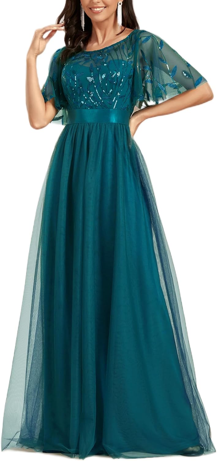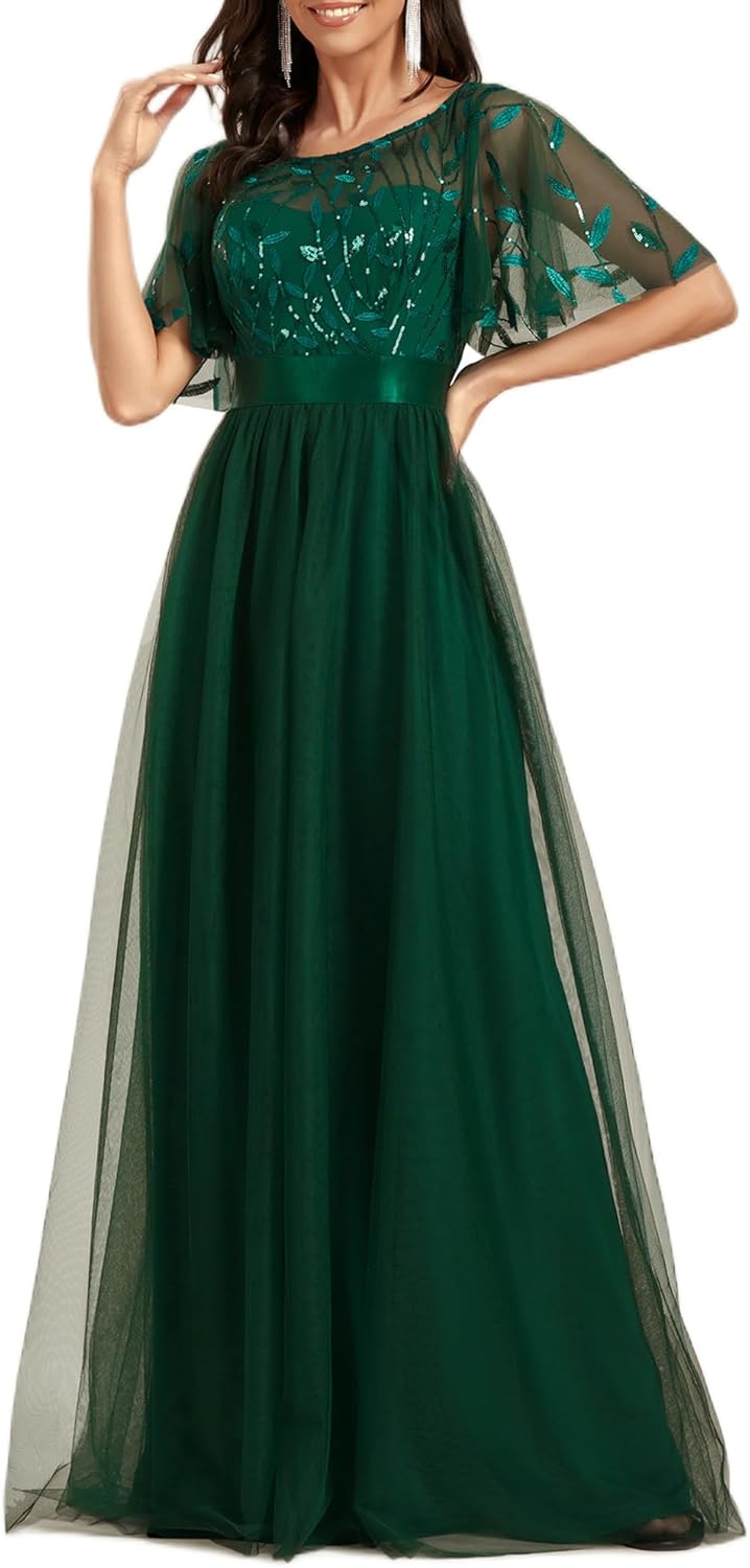 Ever-Pretty Women’s Formal Dresses Crew Neck Sequin Ruffle Sleeve Empire Waist Beaded Long Evening Dresses 00904
