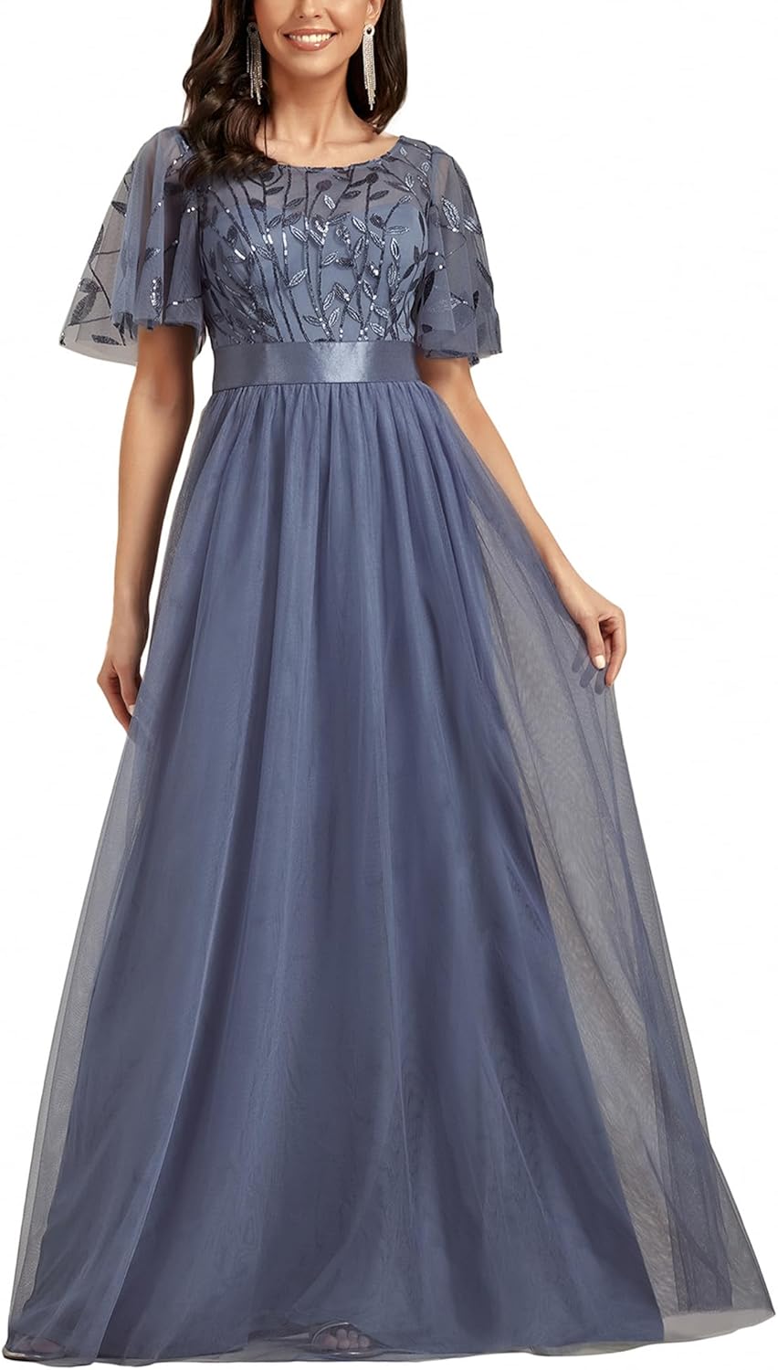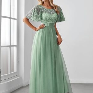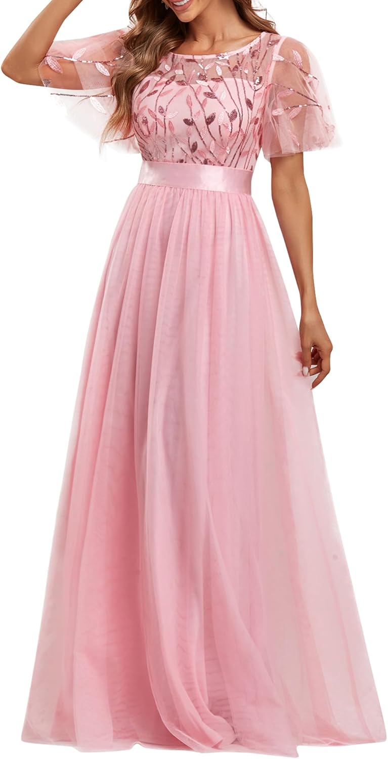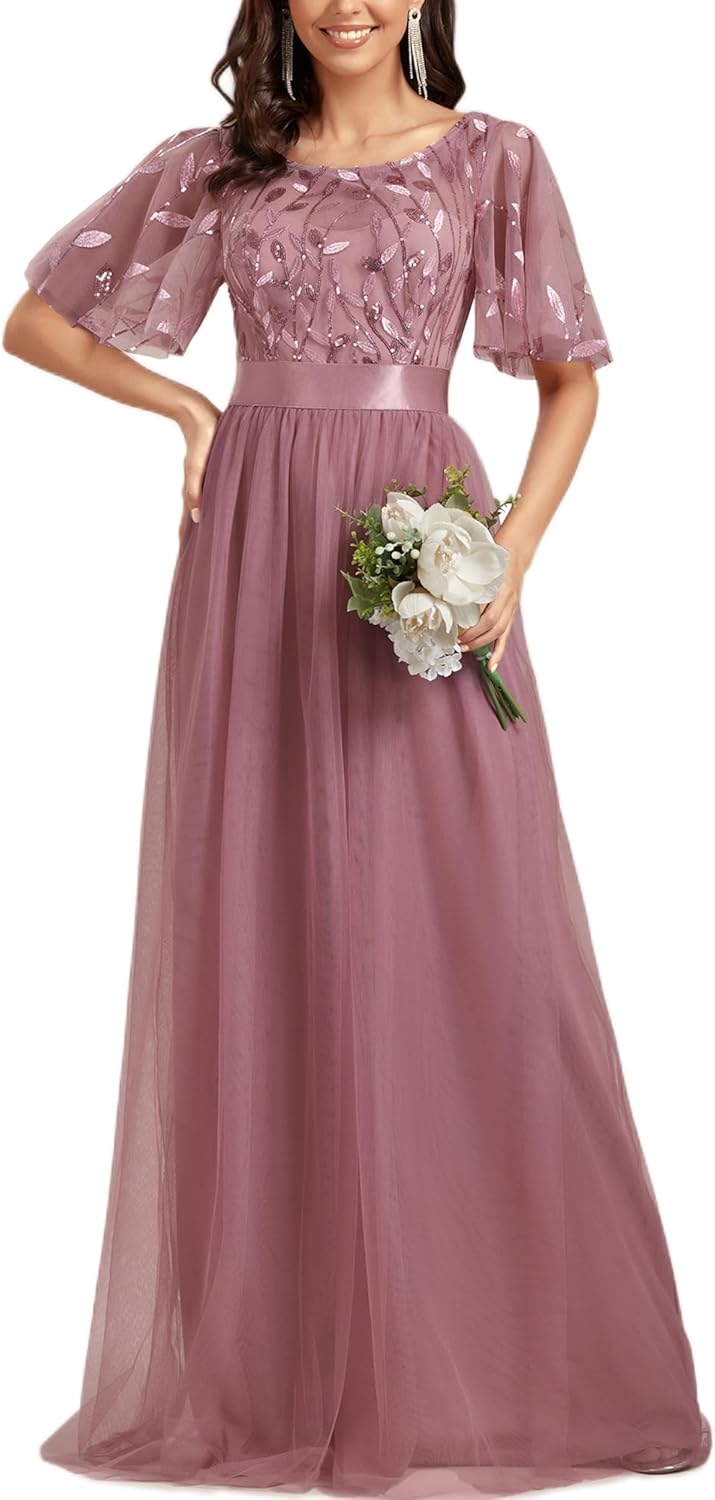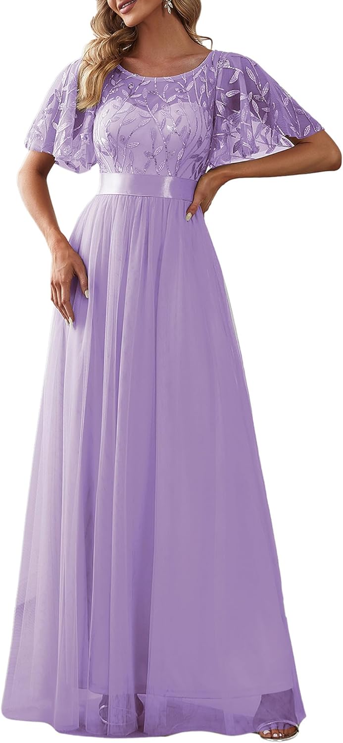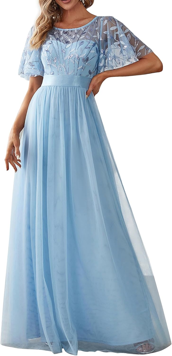 Ever-Pretty Women’s Formal Dresses Crew Neck Sequin Ruffle Sleeve Empire Waist Beaded Long Evening Dresses 00904