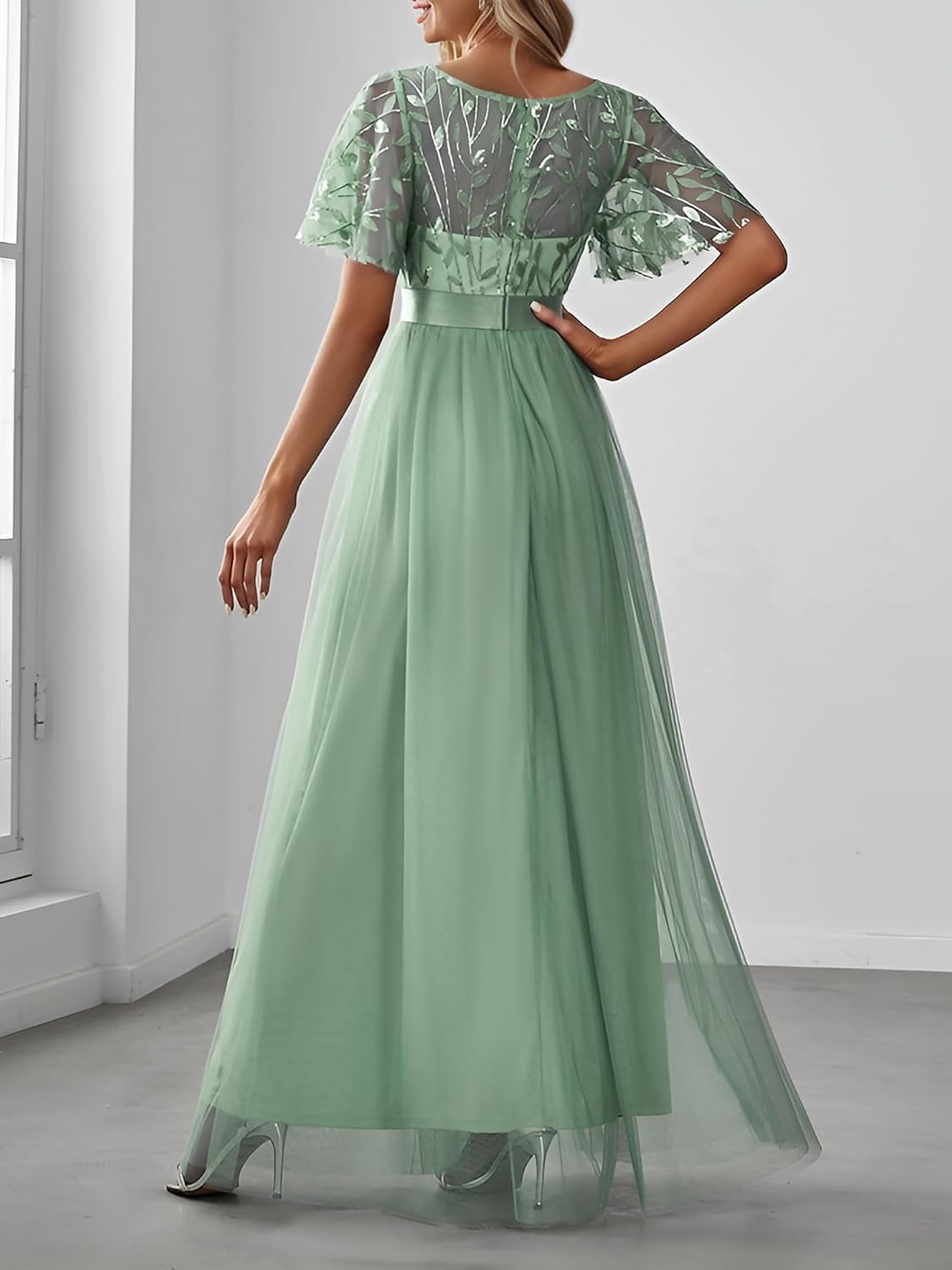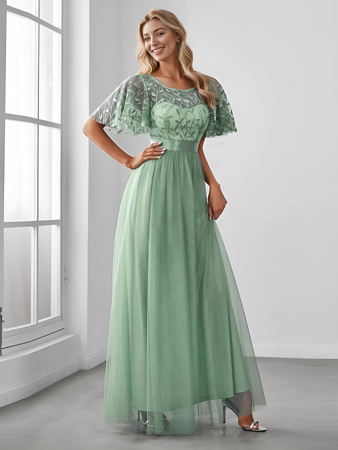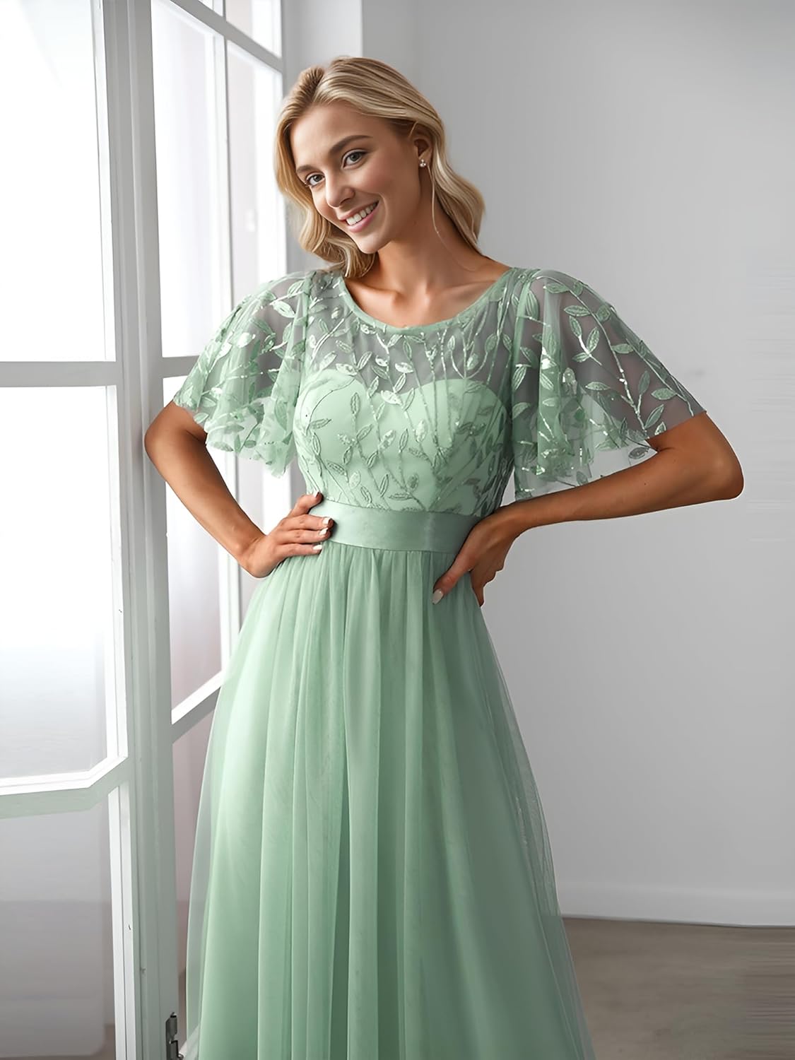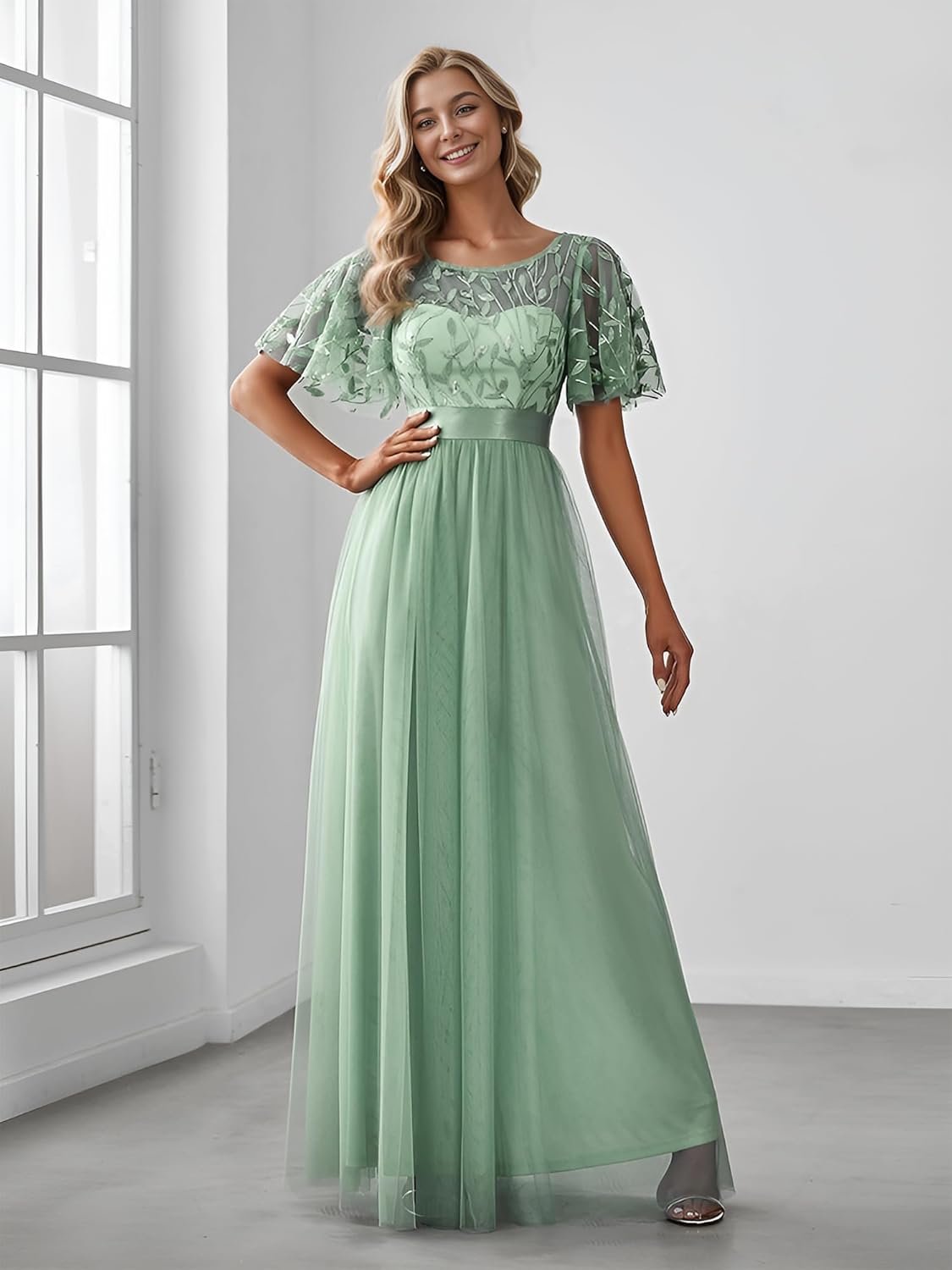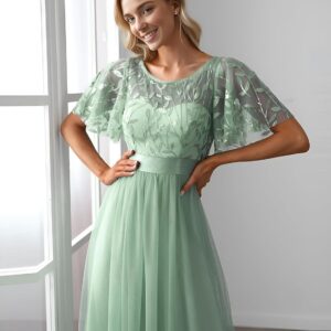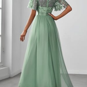 Ever-Pretty Women’s Formal Dresses Crew Neck Sequin Ruffle Sleeve Empire Waist Beaded Long Evening Dresses 00904