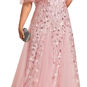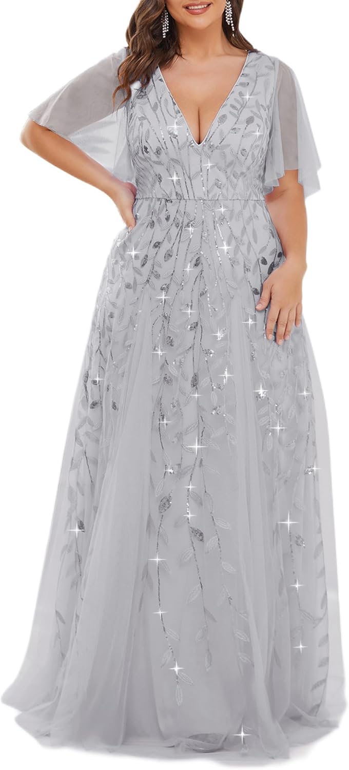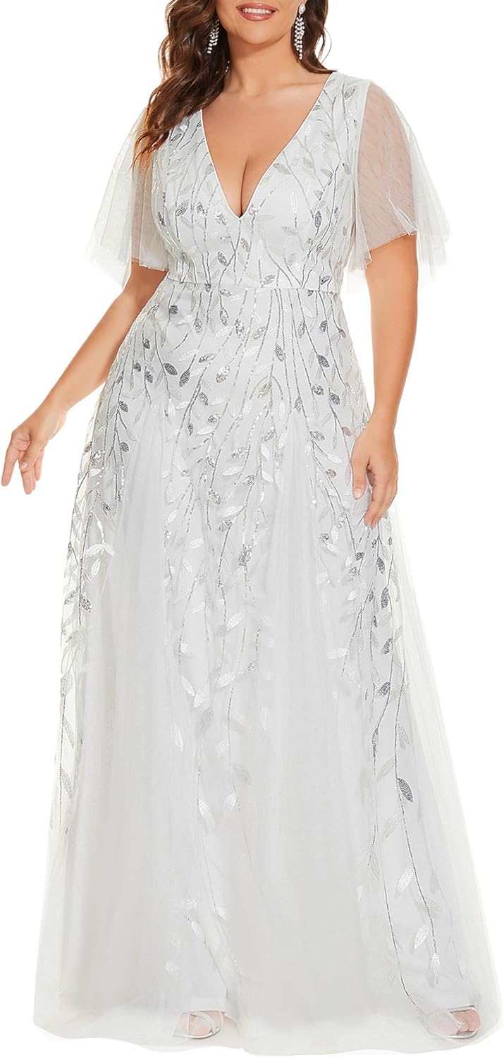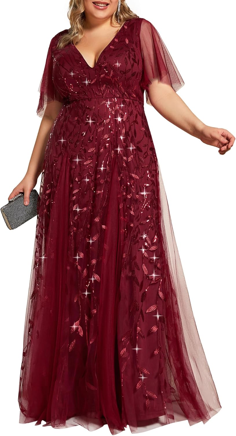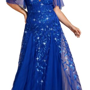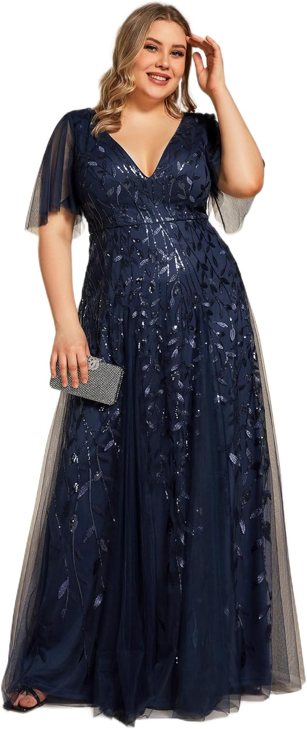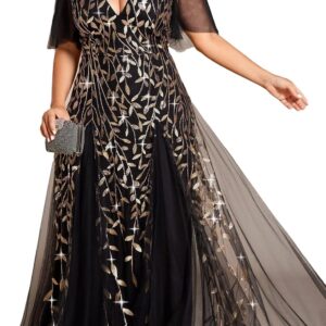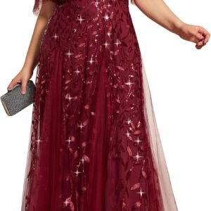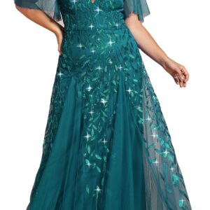Ever-Pretty Womens Plus Size V-Neck Sequin Emboridery Formal Evening Dresses with Sleeves 00736-PZ