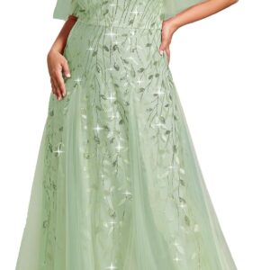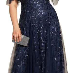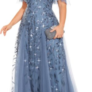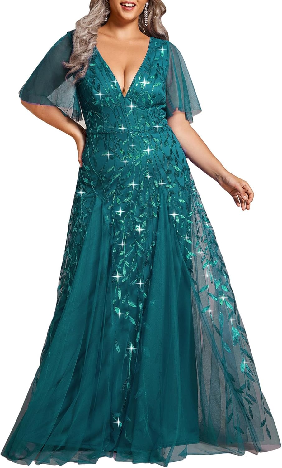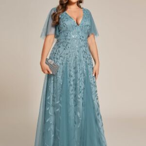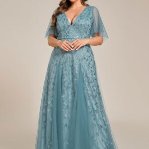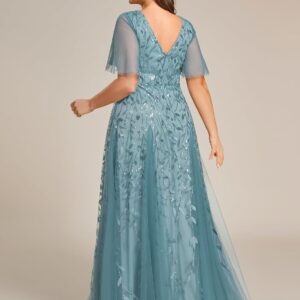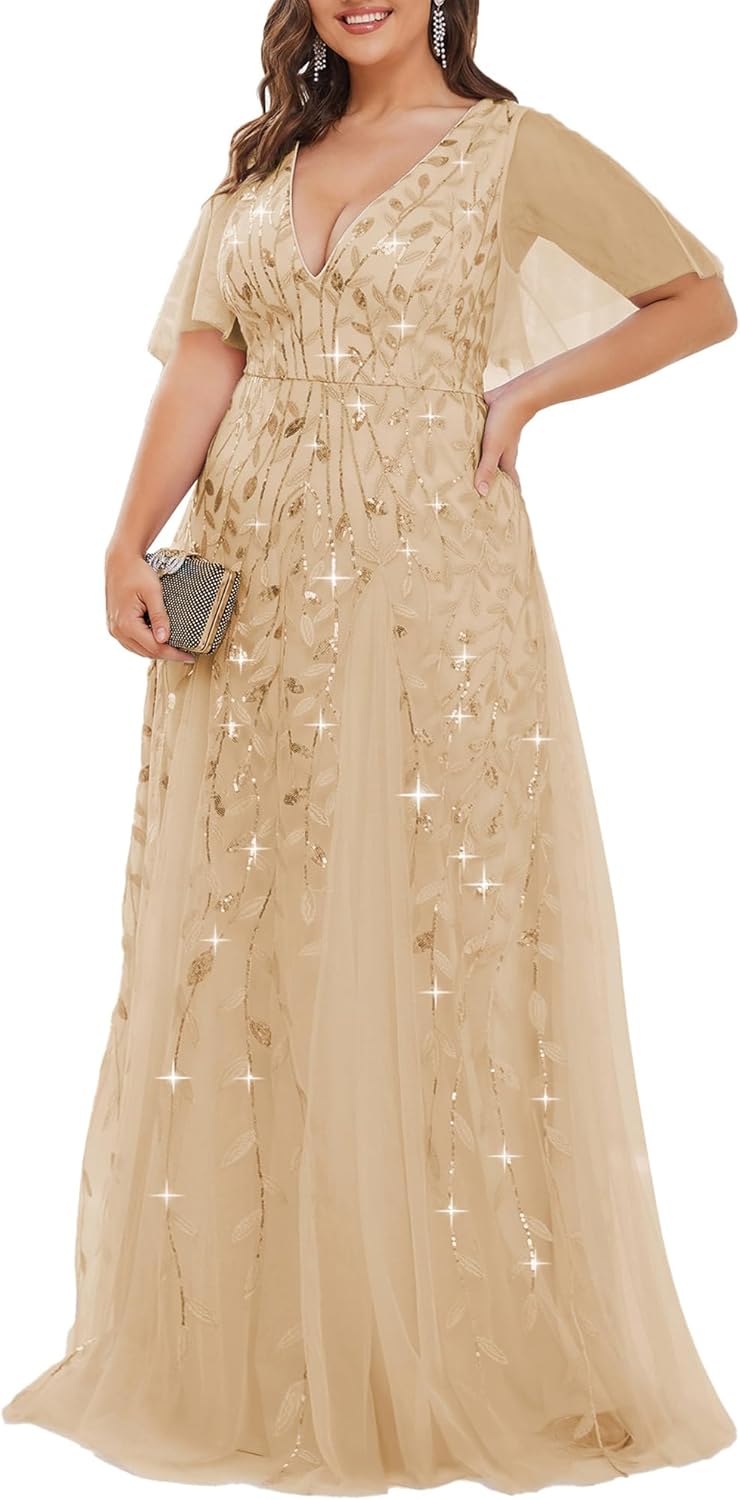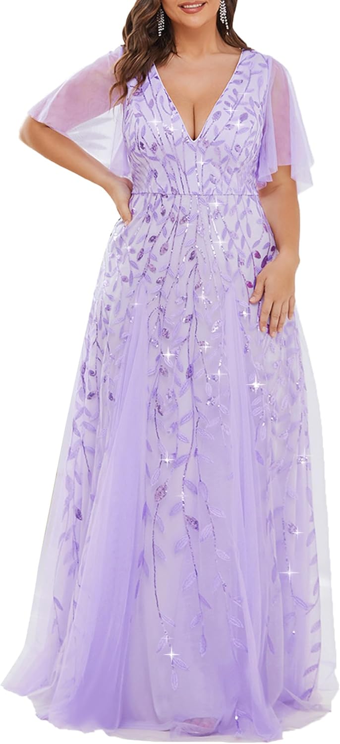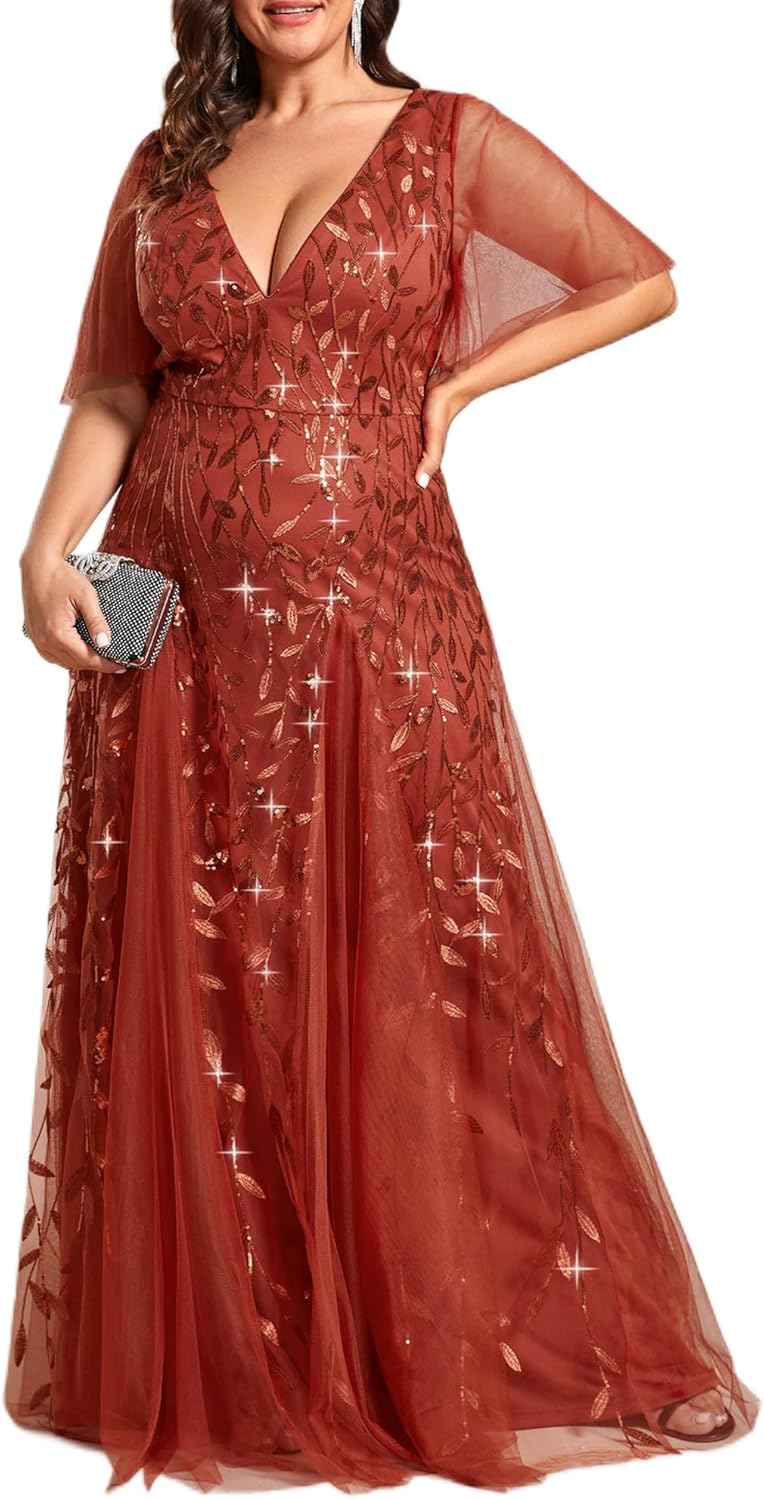 Ever-Pretty Womens Plus Size V-Neck Sequin Emboridery Formal Evening Dresses with Sleeves 00736-PZ