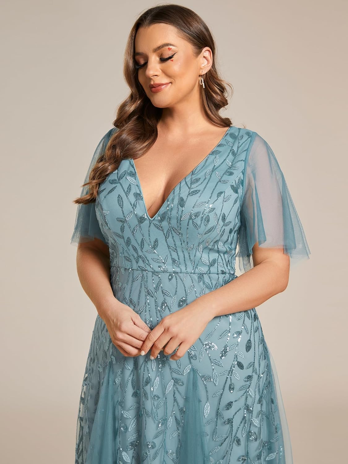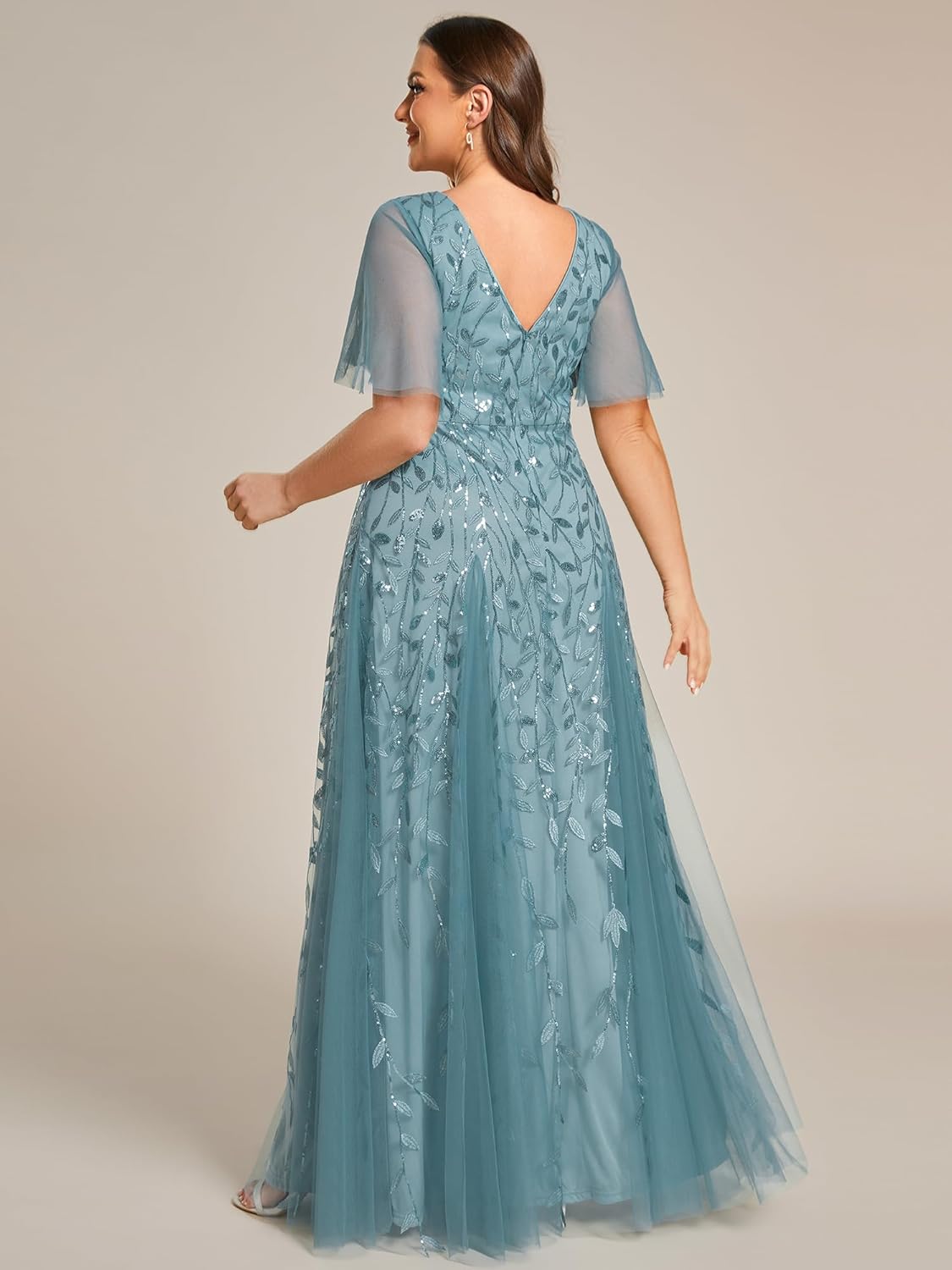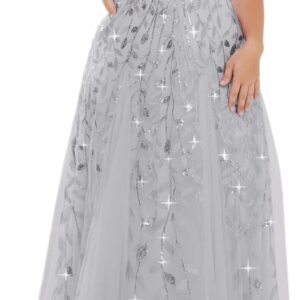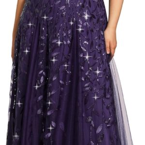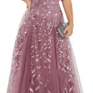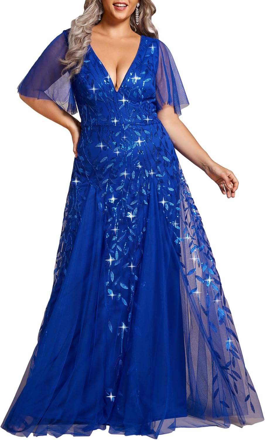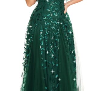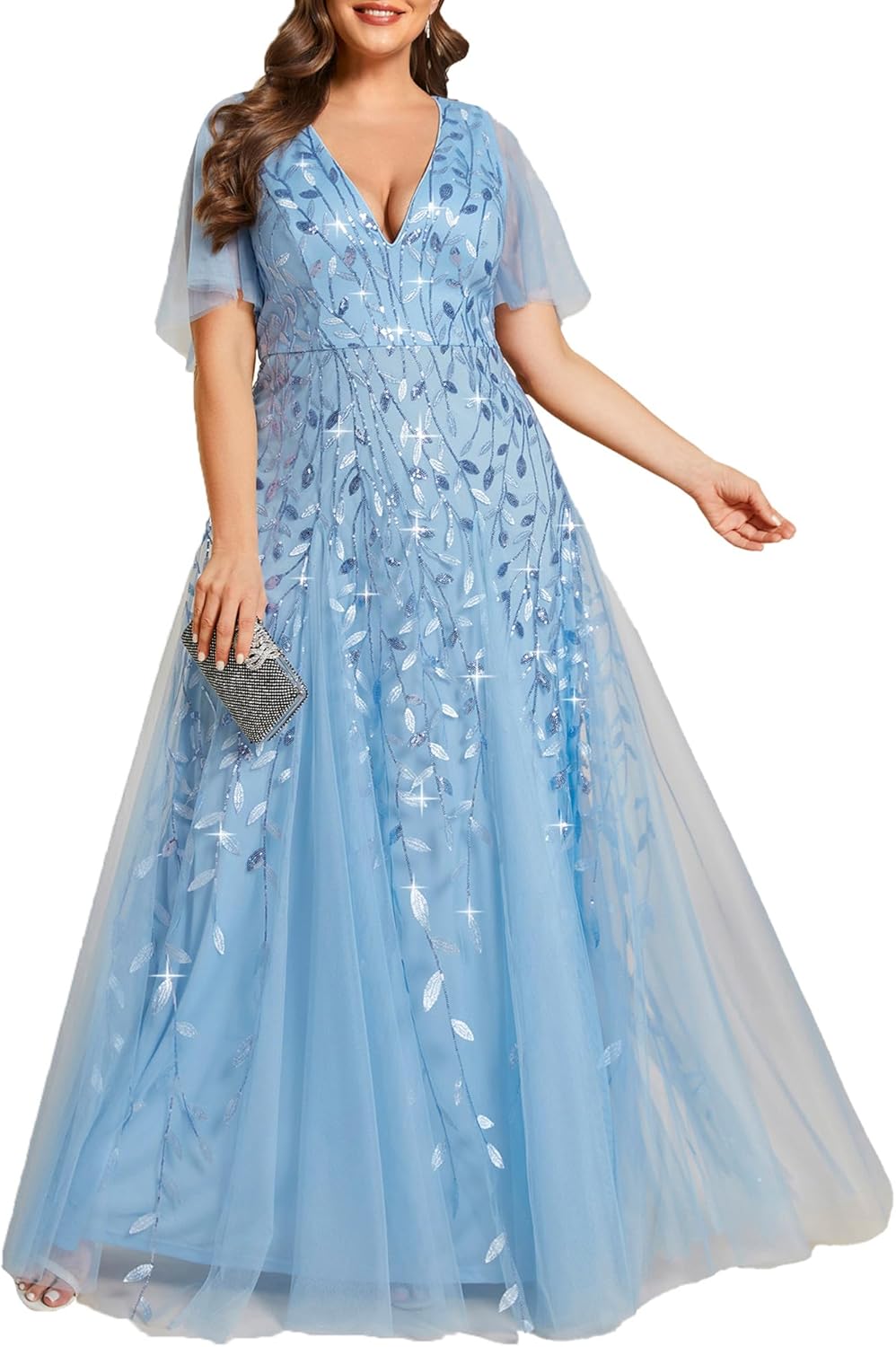 Ever-Pretty Womens Plus Size V-Neck Sequin Emboridery Formal Evening Dresses with Sleeves 00736-PZ