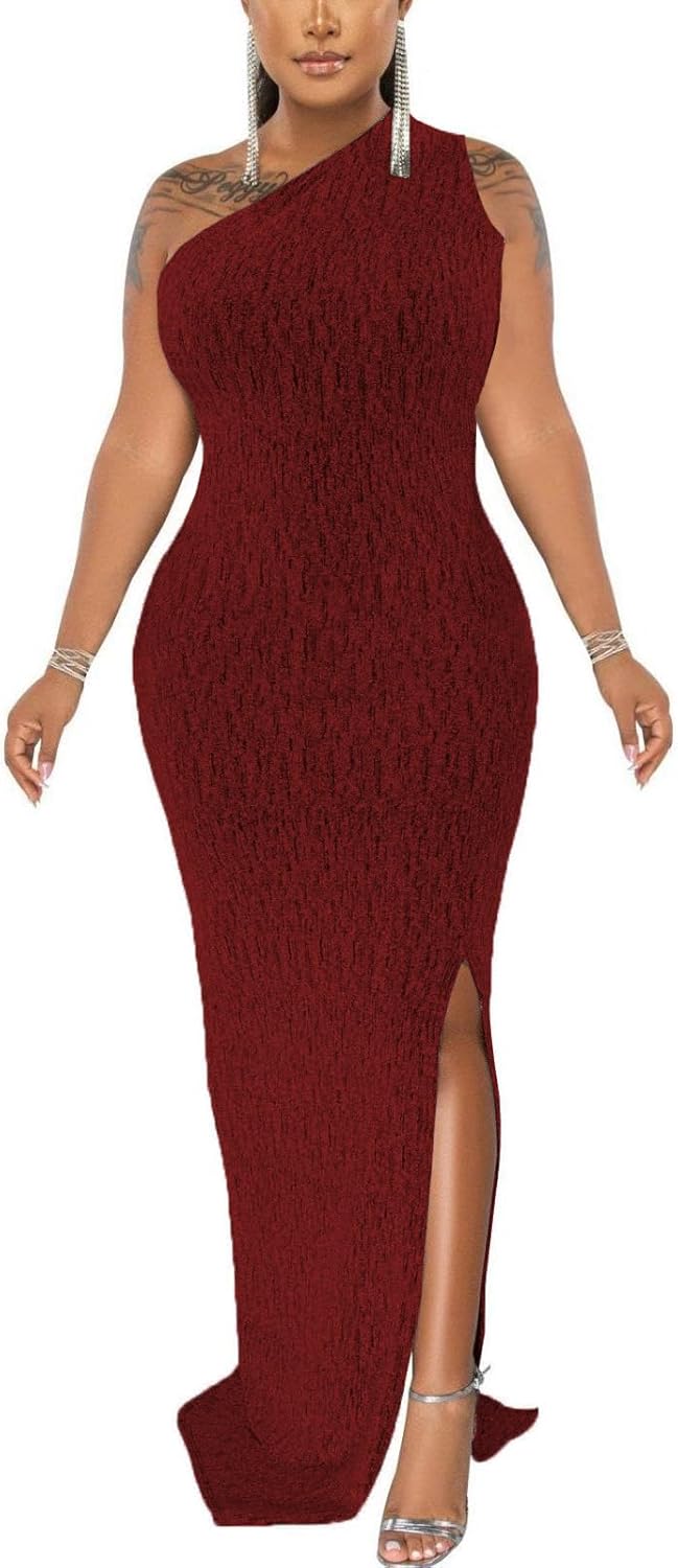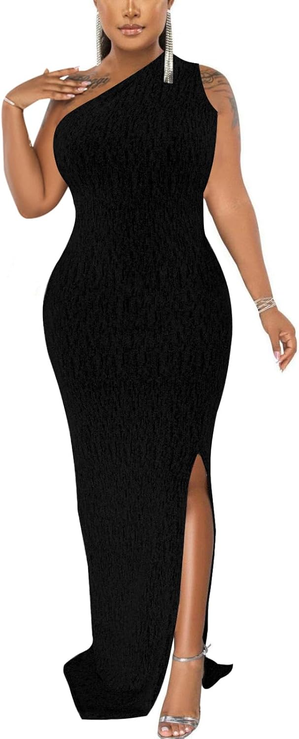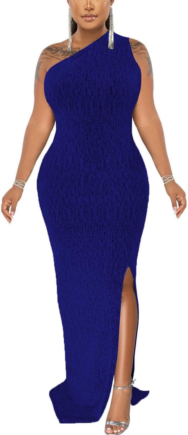 Formal Dress for Women Elegant Sparkly One Shoulder Sleeveless High Split Cocktail Party Prom Dresses