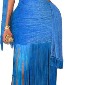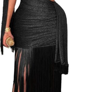 GEULIS Women's Sexy One Shoulder Fringe Dress
