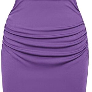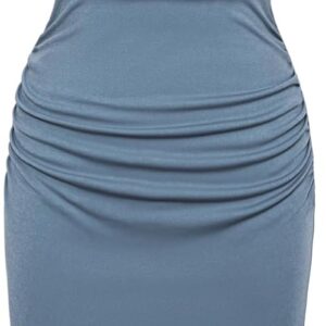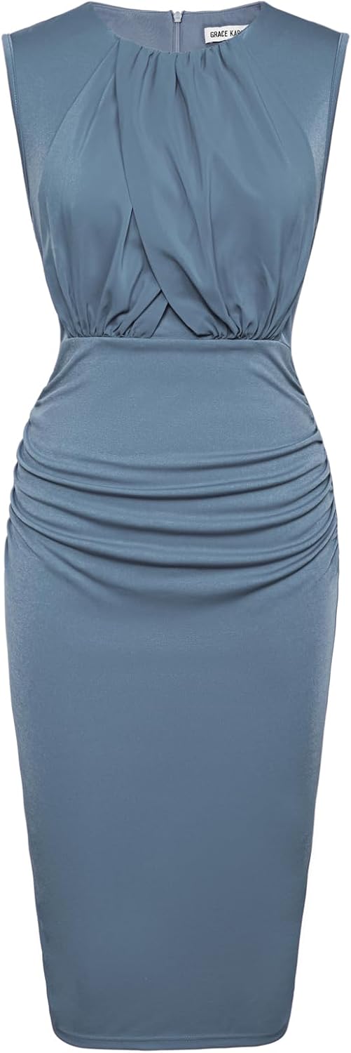 GRACE KARIN Women’s Ruched Bodycon Dress Summer Sleeveless Front Drape Patchwork Crew Neck Midi Cocktail Dress