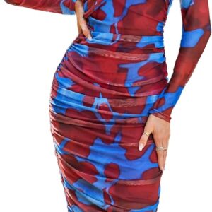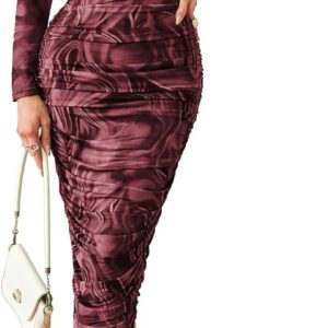Long Formal Dresses for Women Fall Long Sleeve Ruched Midi Bodycon Dress Fitted
