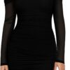 Fashionable 2024 Soft Mesh Long Sleeve Bodycon Midi Dress