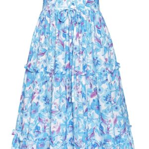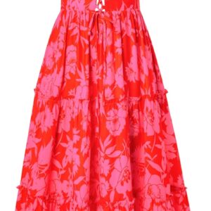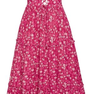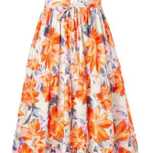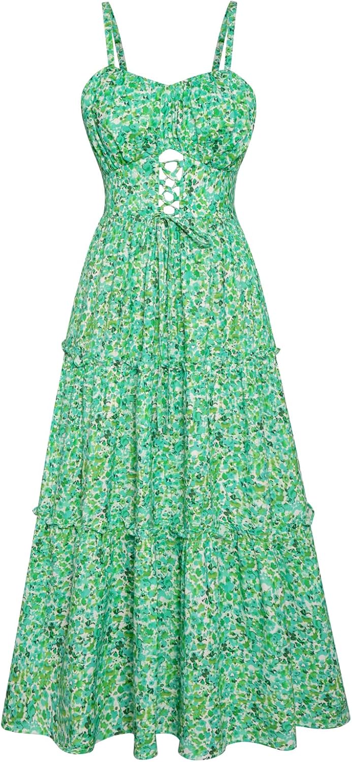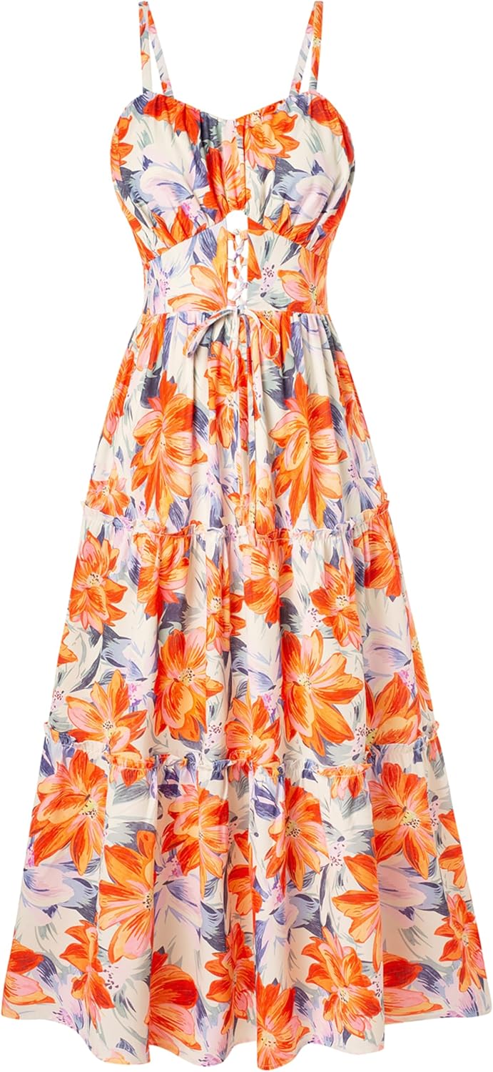 GRACE KARIN Women’s Summer Floral Dress 2025 Spaghetti Strap Smocked Tiered Casual Boho Maxi Long Sundress with Pockets