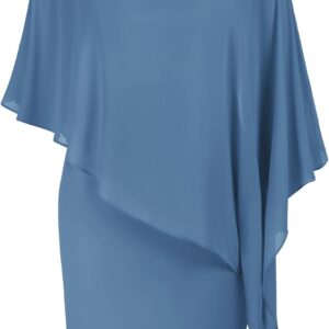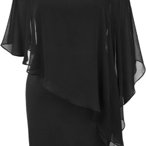 Elevate your style with this knee-length dress featuring a fixed irregular hem chiffon capelet, adding an elegant and ethereal touch to your ensemble. Perfect for special occasions or formal events.
