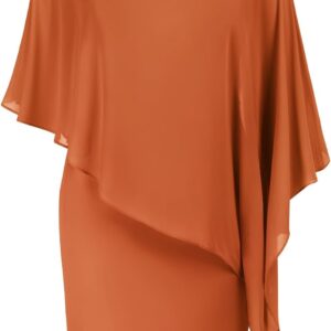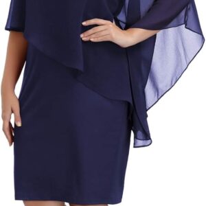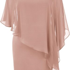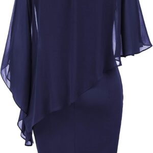 Women Chiffon Cape Wedding Guest Pencil Dress