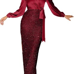 houstil Women Long Sleeve 1920s Sequin Formal Dress Maxi V Neck Cocktail Business Evening Gown Wedding Guest Dresses