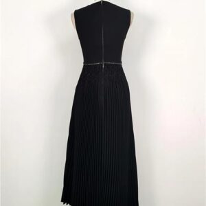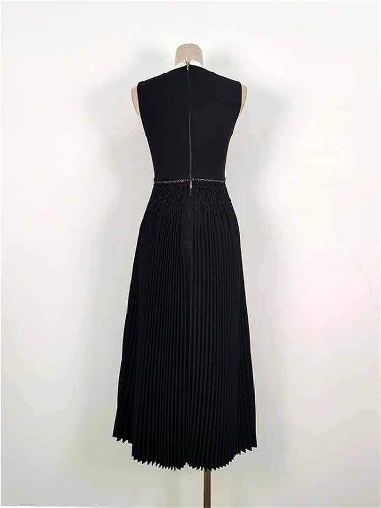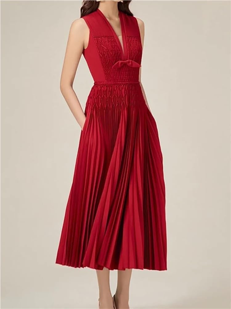 KswyyuwxgqI Women’s Deep V-Neck Sleeveless Evening Dress Pleated Zipper Contrast Color Line Waist Formal Dresses
