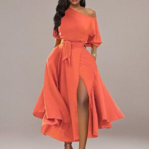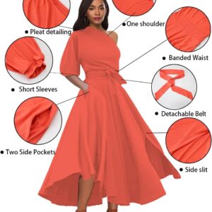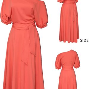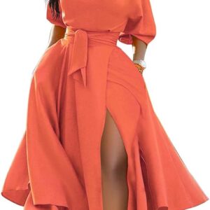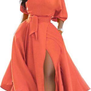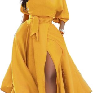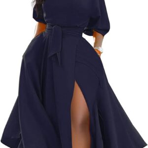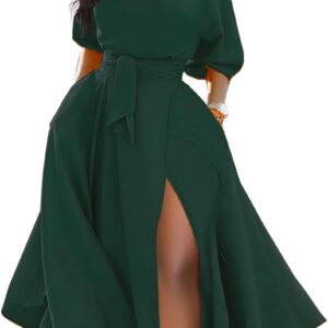 LILYIN Women\u2019s Elegant Off Shoulder Short Sleeve Belted Side Slit Cocktail Party Swing Dress with Pockets