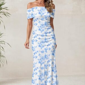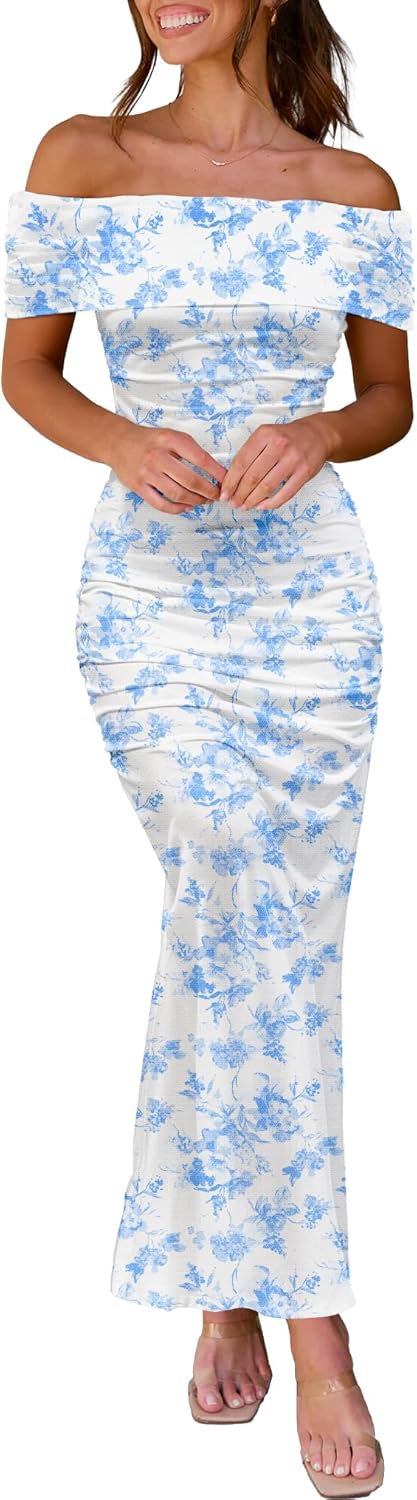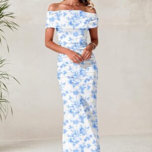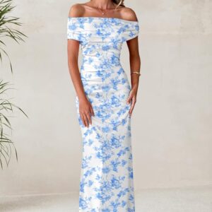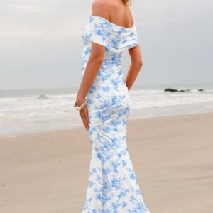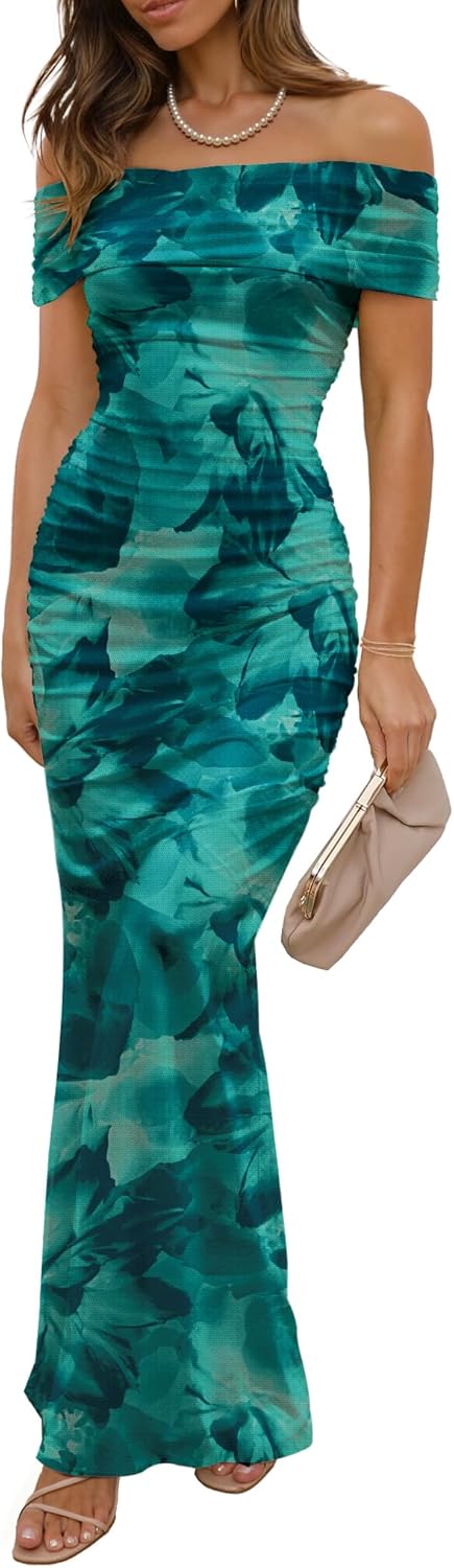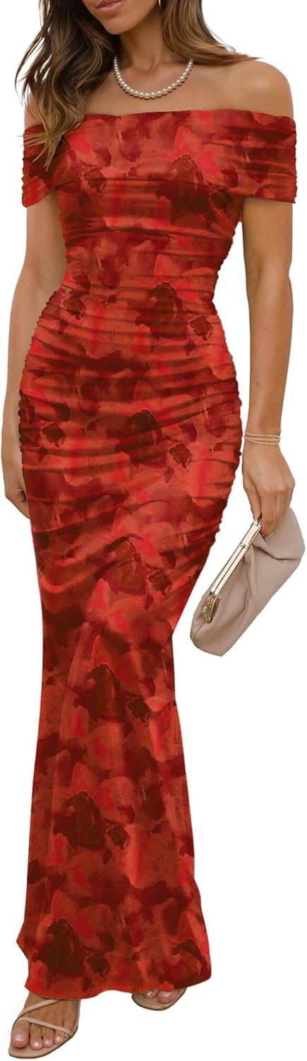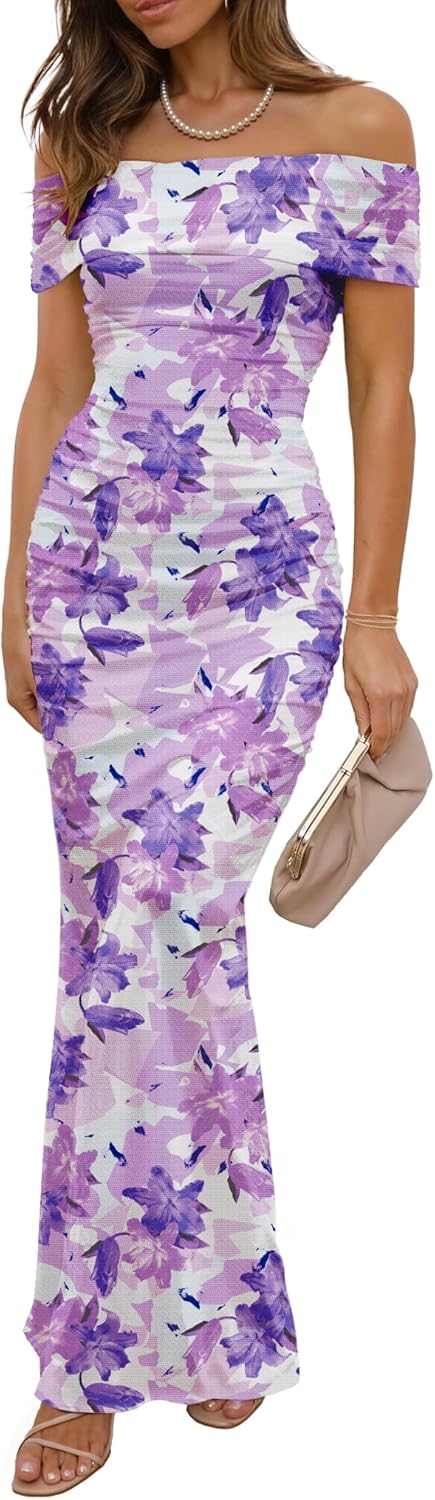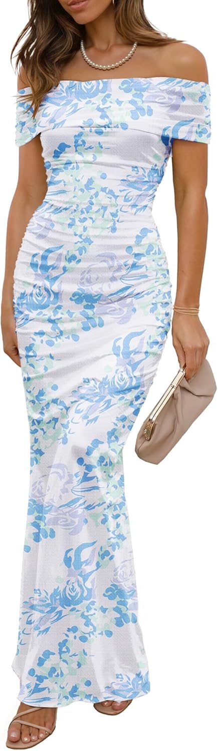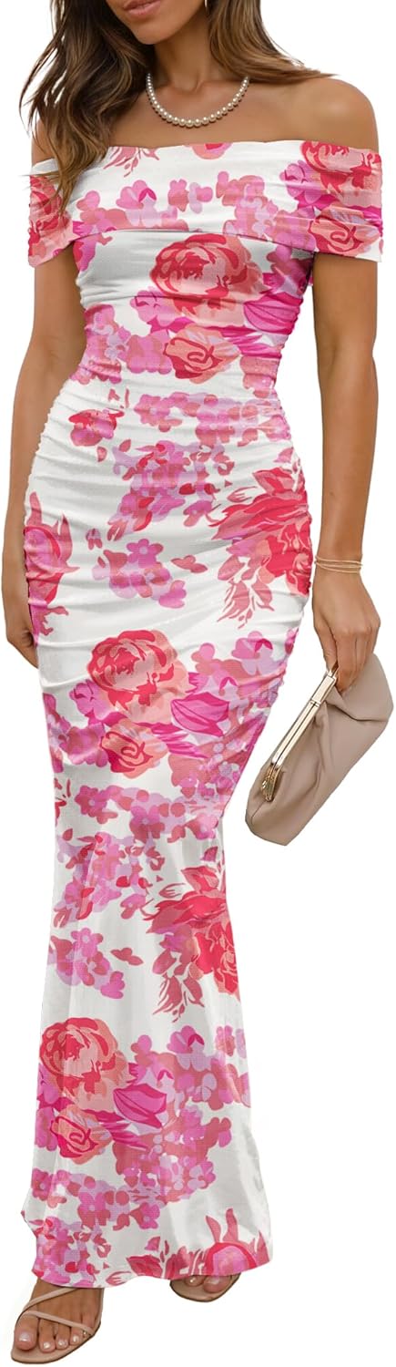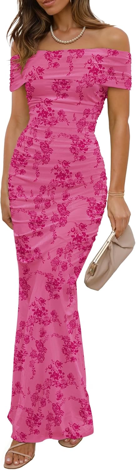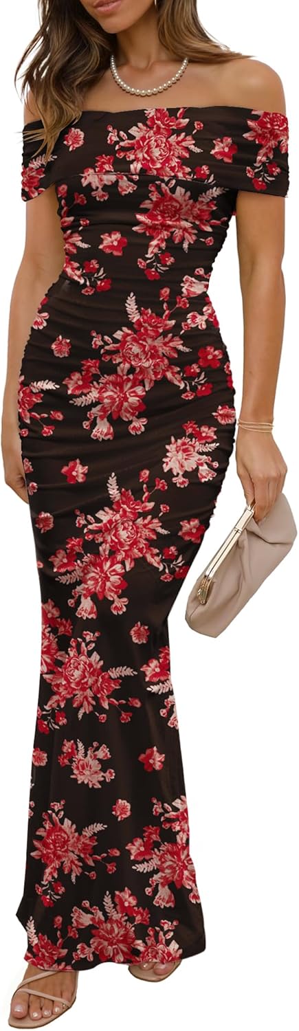 LUXVEER Women's Mesh Floral Maxi Dress 2025 Summer Off The Shoulder Dress