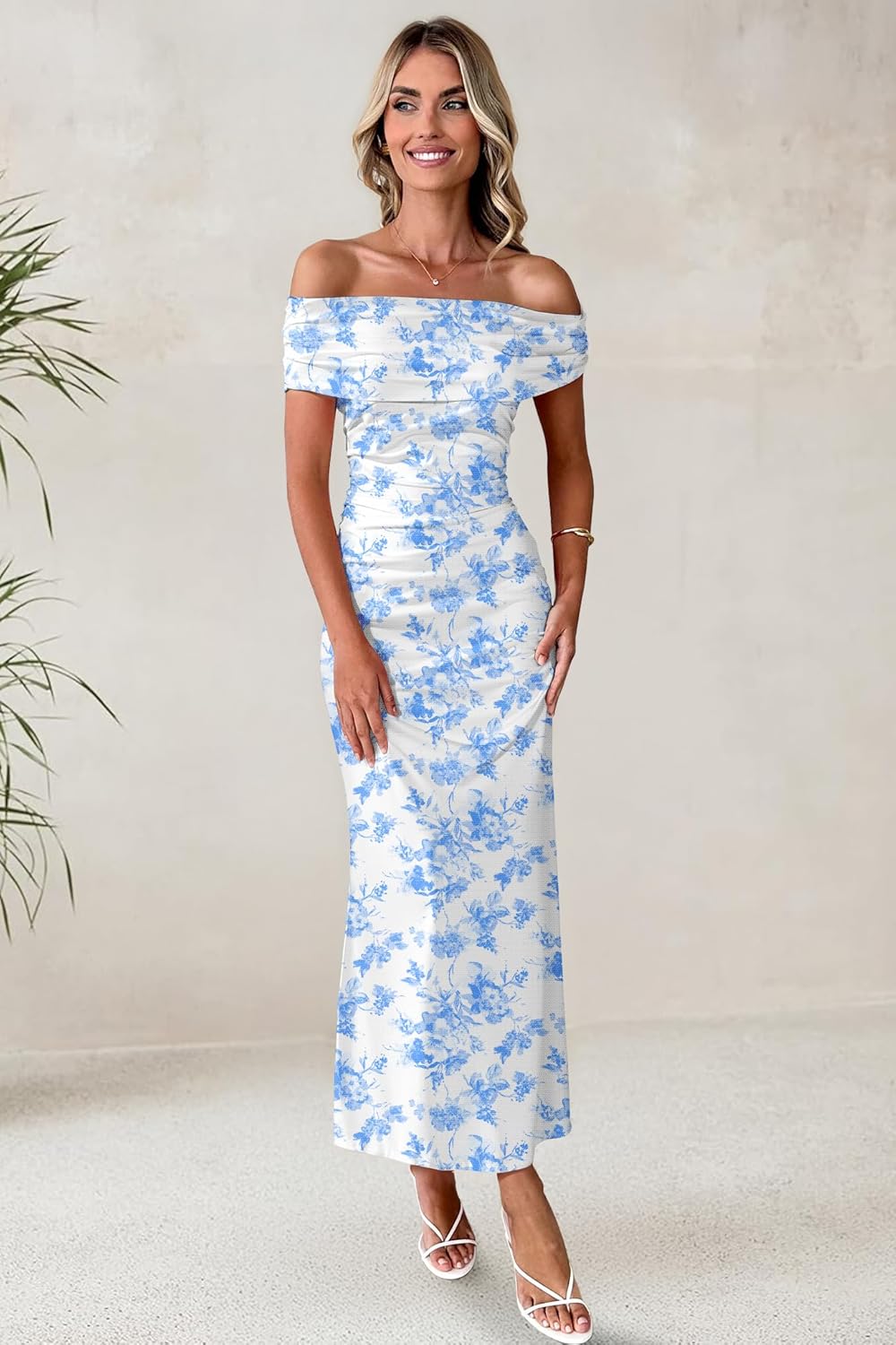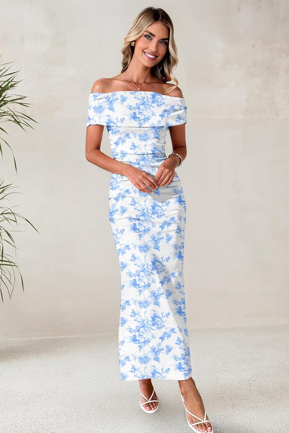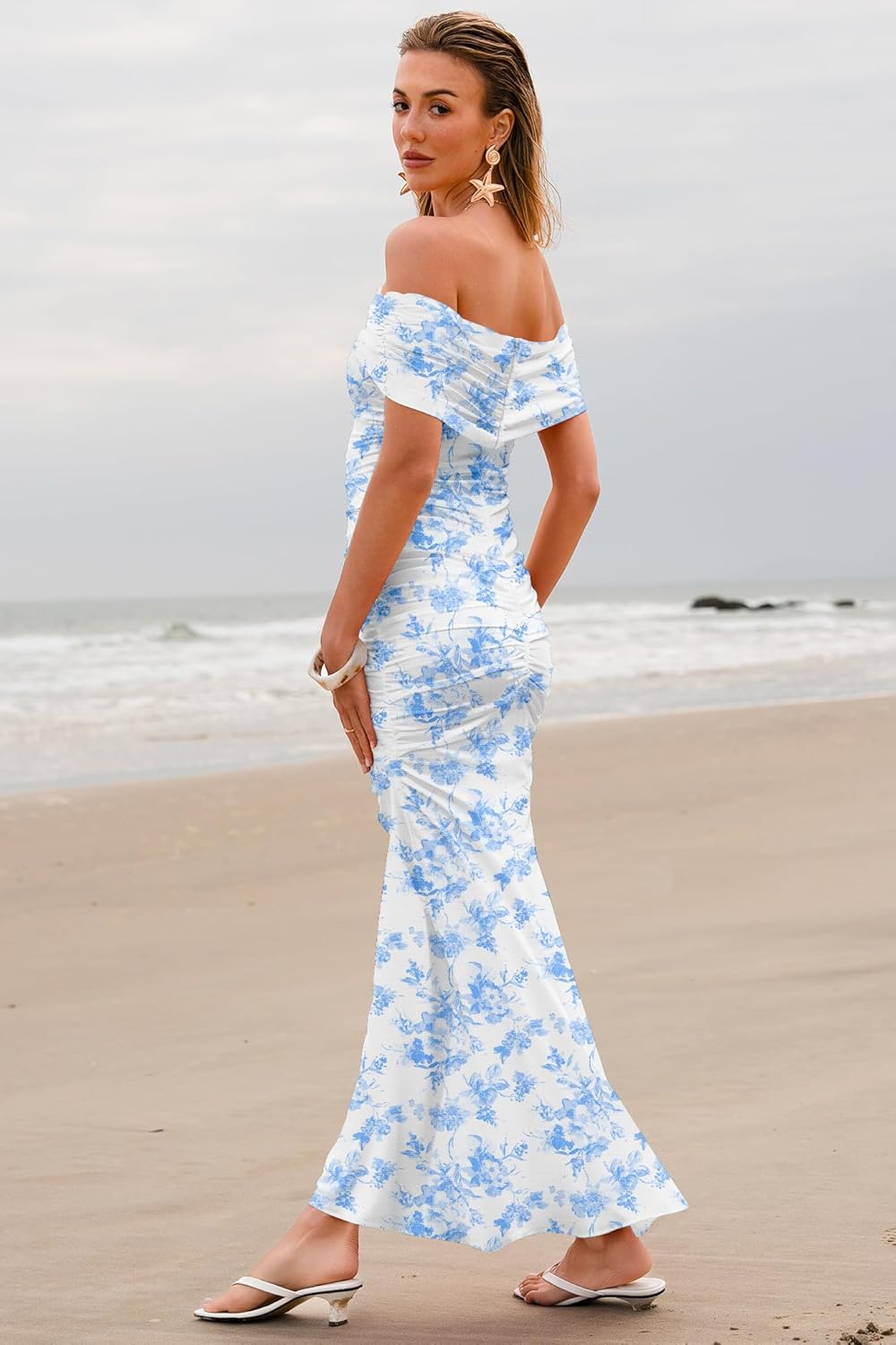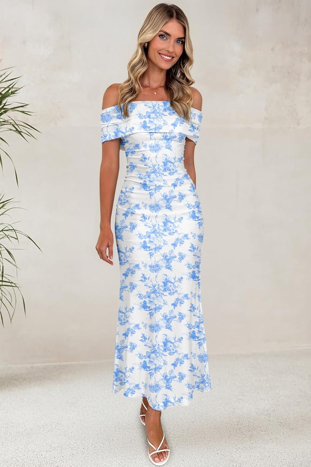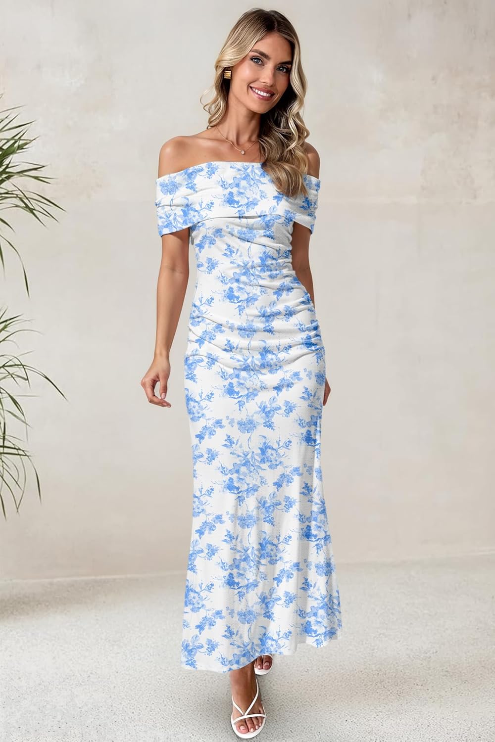 LUXVEER Women's Mesh Floral Maxi Dress 2025 Summer Off The Shoulder Dress