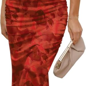 Women‘s Runched Bodycon Long Cocktail Party Club Fitted Fashion Dresses