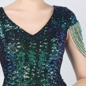 - The 1920s maxi sequin formal dress is so feminine and fresh with V neck, long beads tassel sleeve cocktail dress, back zipper floor length party dresses.