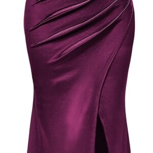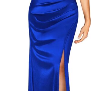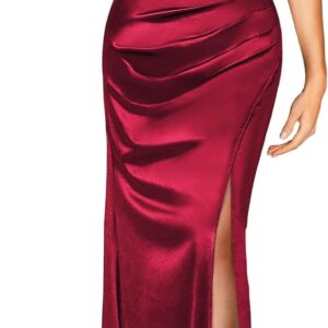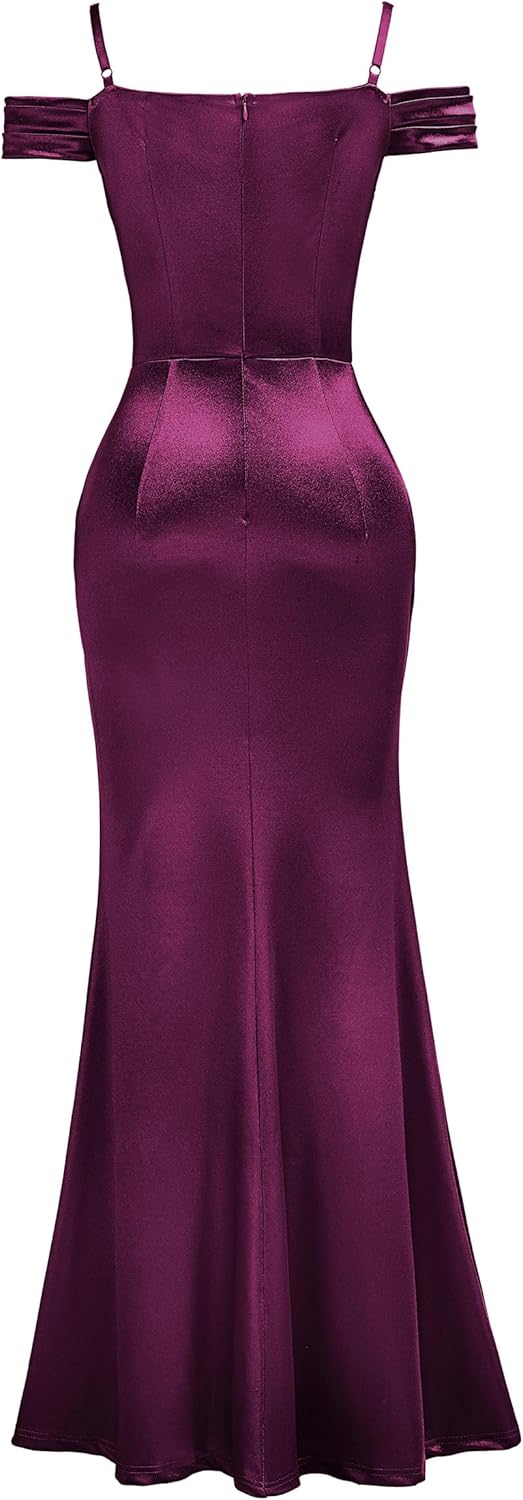Miusol Women’s Sexy Off Shoulder Satin High Split Ruched Style Evening Party Maxi Dress