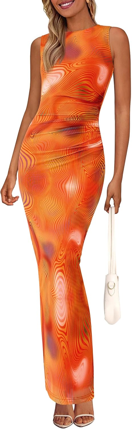 PRETTYGARDEN Wedding Guest Dresses for Women 2025 Summer Spring Floral Bodycon Sleeveless Mesh Maxi Long Dress