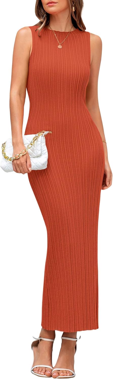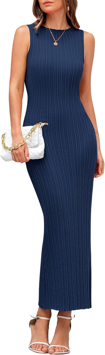 PRETTYGARDEN Women’s 2025 Summer Casual Maxi Dresses Ribbed Knit Sleeveless Bodycon Elegant Going Out Beach Vacation Clothes