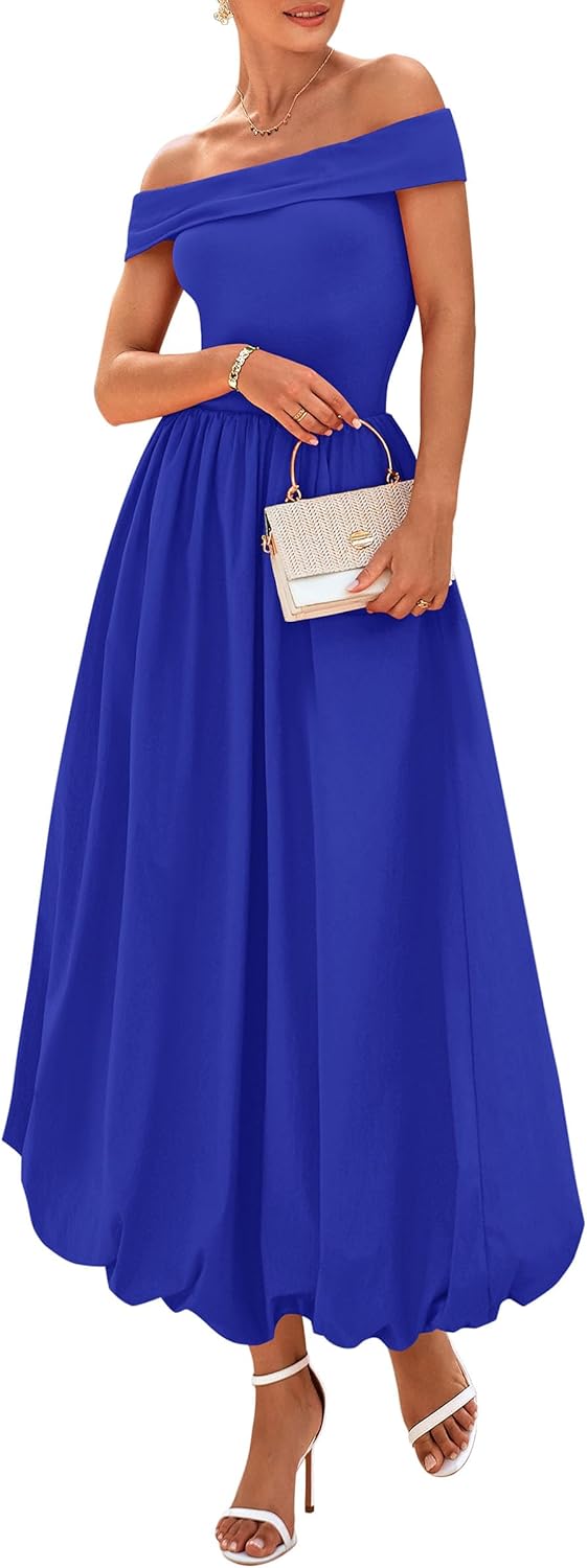 PRETTYGARDEN Womens Summer Off Shoulder Sleeveless Midi Dress Cocktail A Line Flowy Wedding Guest Dresses with Pockets
