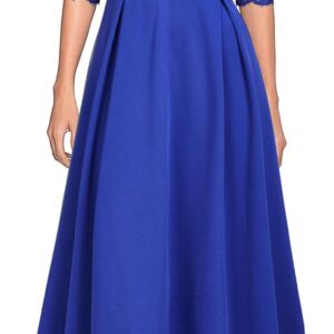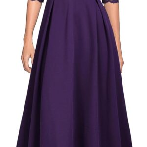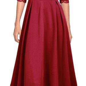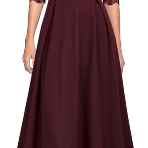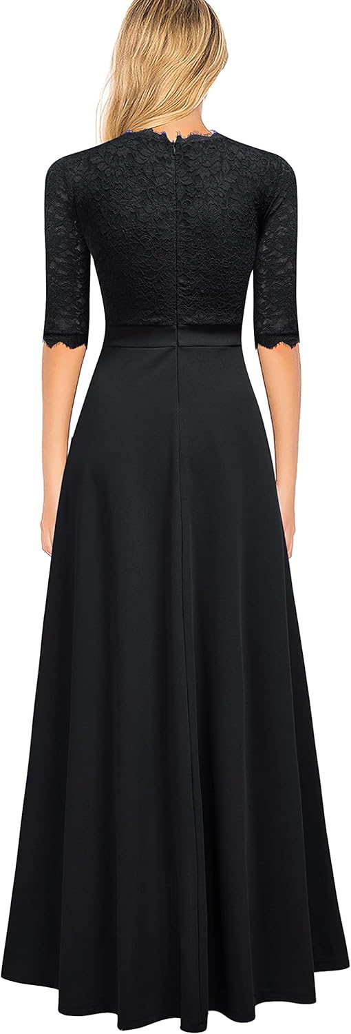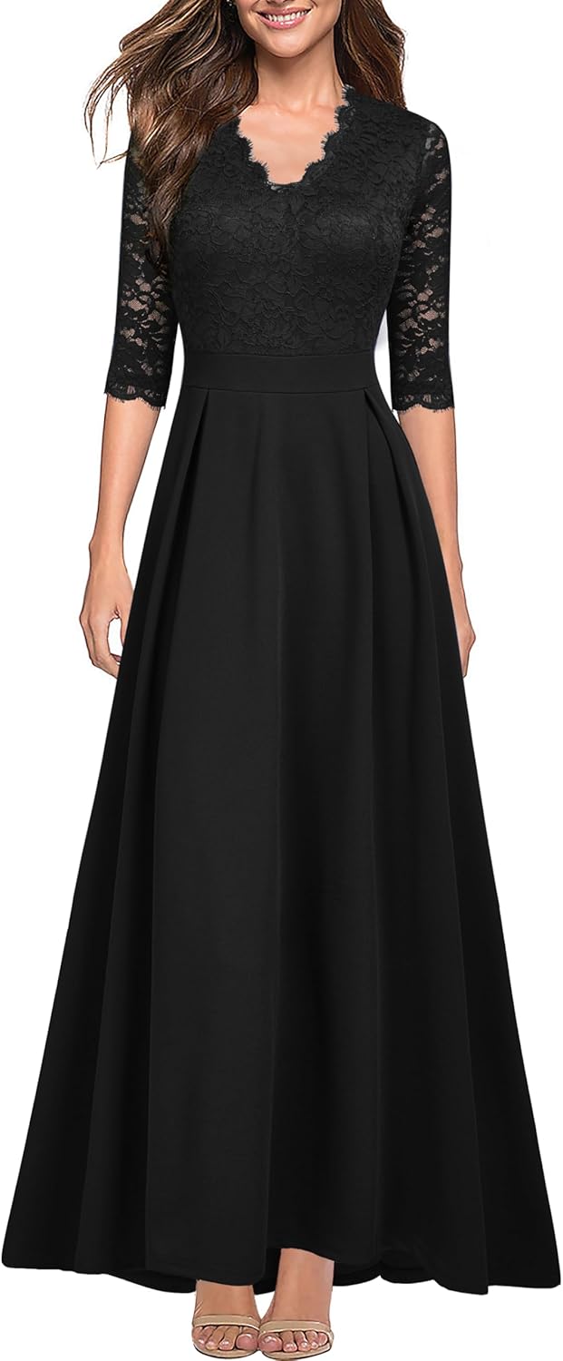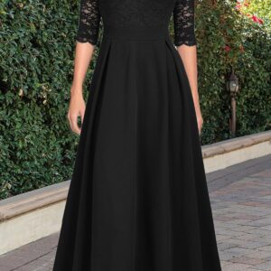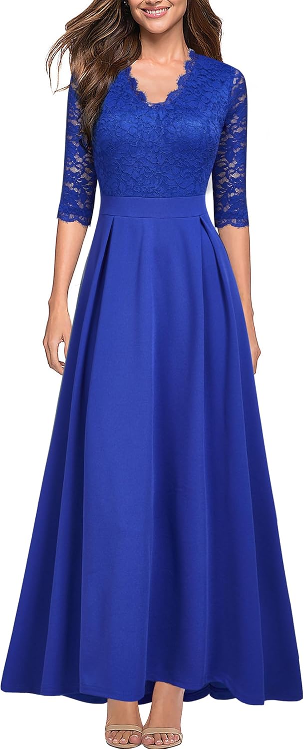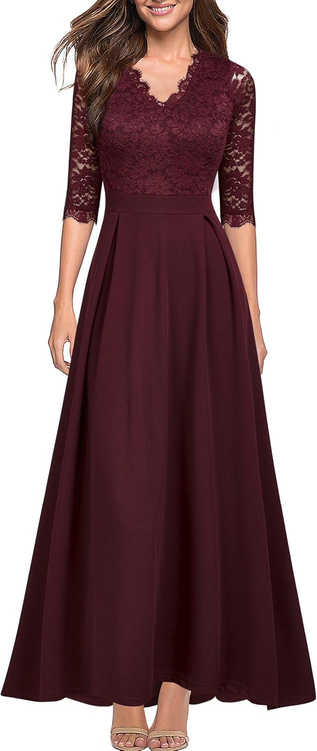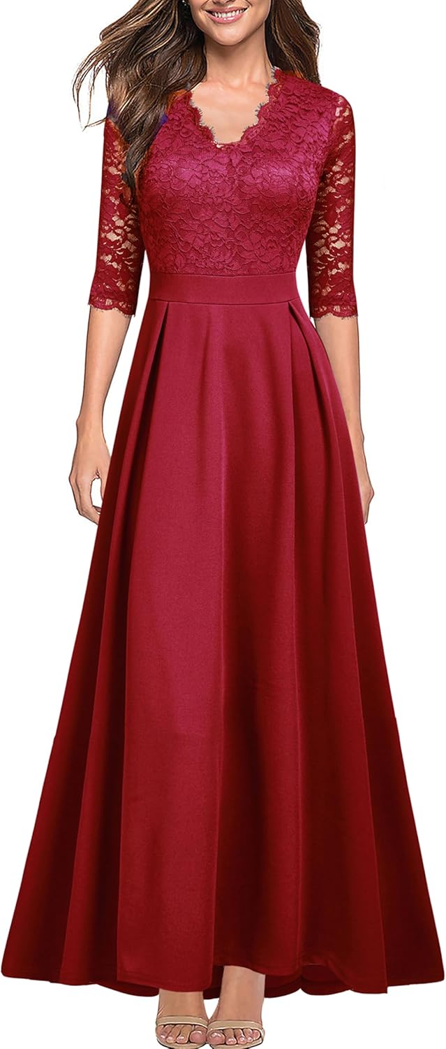 REPHYLLIS Women’s V Neck Lace Vintage Formal Bridesmaid Wedding Long Dress