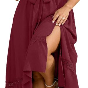 RWJ Women’s Plus Size Dress for Cocktail Wedding Guest Formal V Neck Off The Shoulder Maxi Dress with Belt