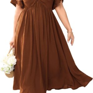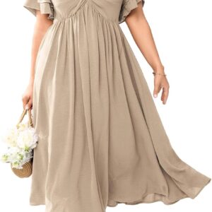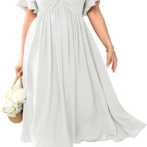 SCOMCHIC Plus Size Wedding Dress Ruffle Sleeve Sweetheart Neckline Summer Dress