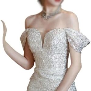 SIDUFHAOPKLL Shoulder Evening Dress Women Senior Sense Banquet Socialite Toasting Dress Slimming