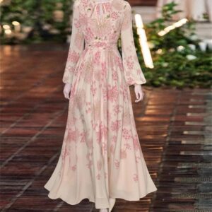 Women Elegant Evening Dress Flare Sleeves High Waist Print Swing for Formal Occasions